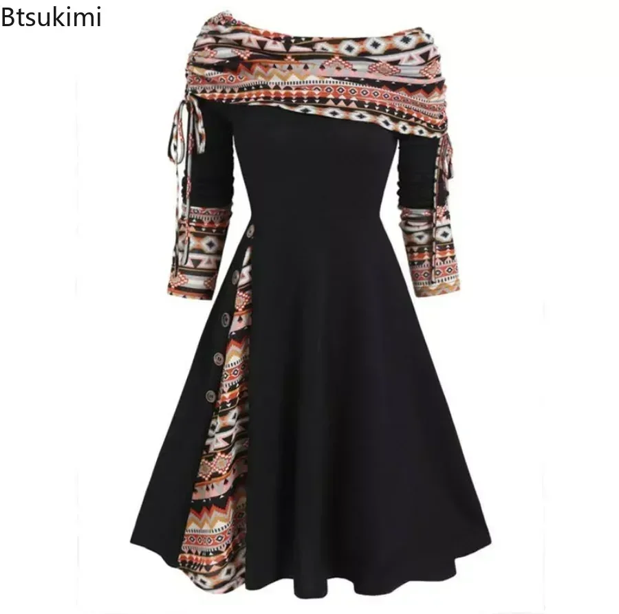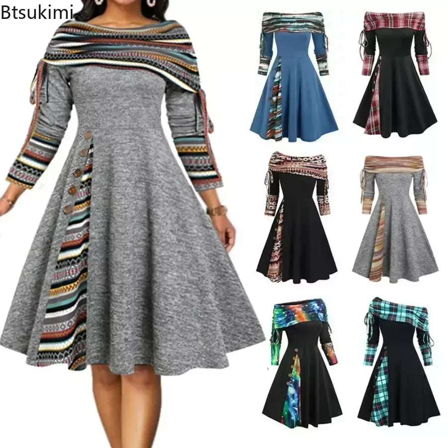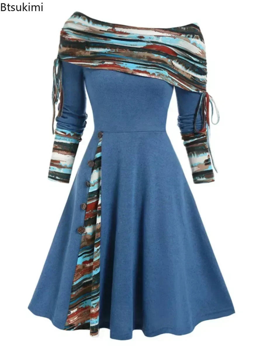 2025 Women’s Casual Long Dress One Sholuder Punk Style Elegant Autumn Winter High Waist Gothic Maxi Work Dress Female Vestidos