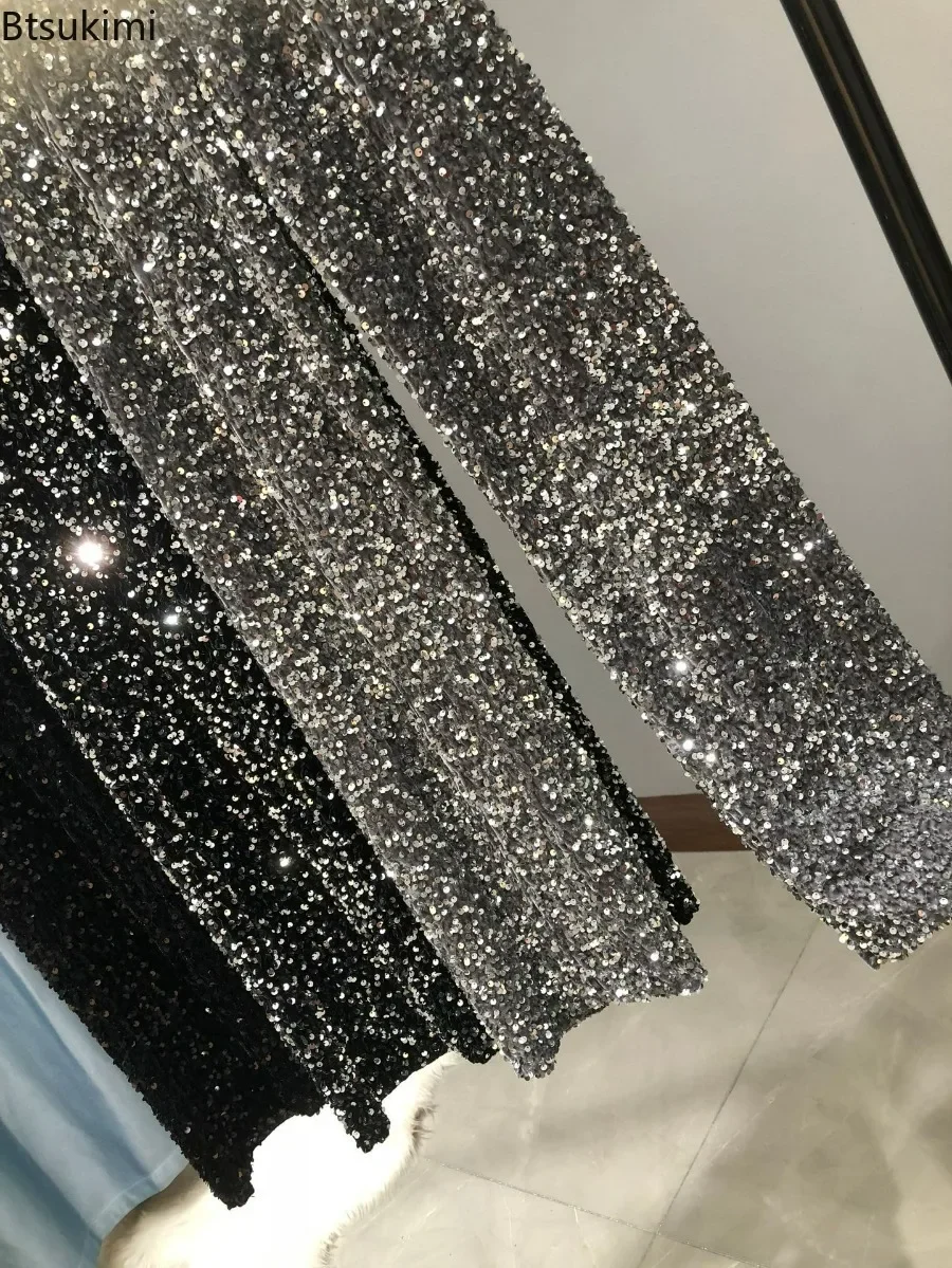 2025 Women’s Thickening Warm Silver Black Sequin Pants Autumn Winter Glitter Pants Sparkly Trousers Party Clubwear Pants Female