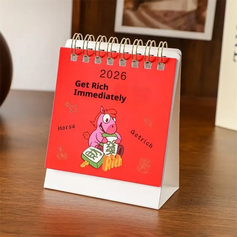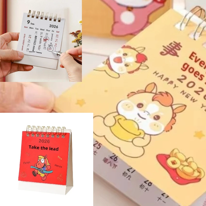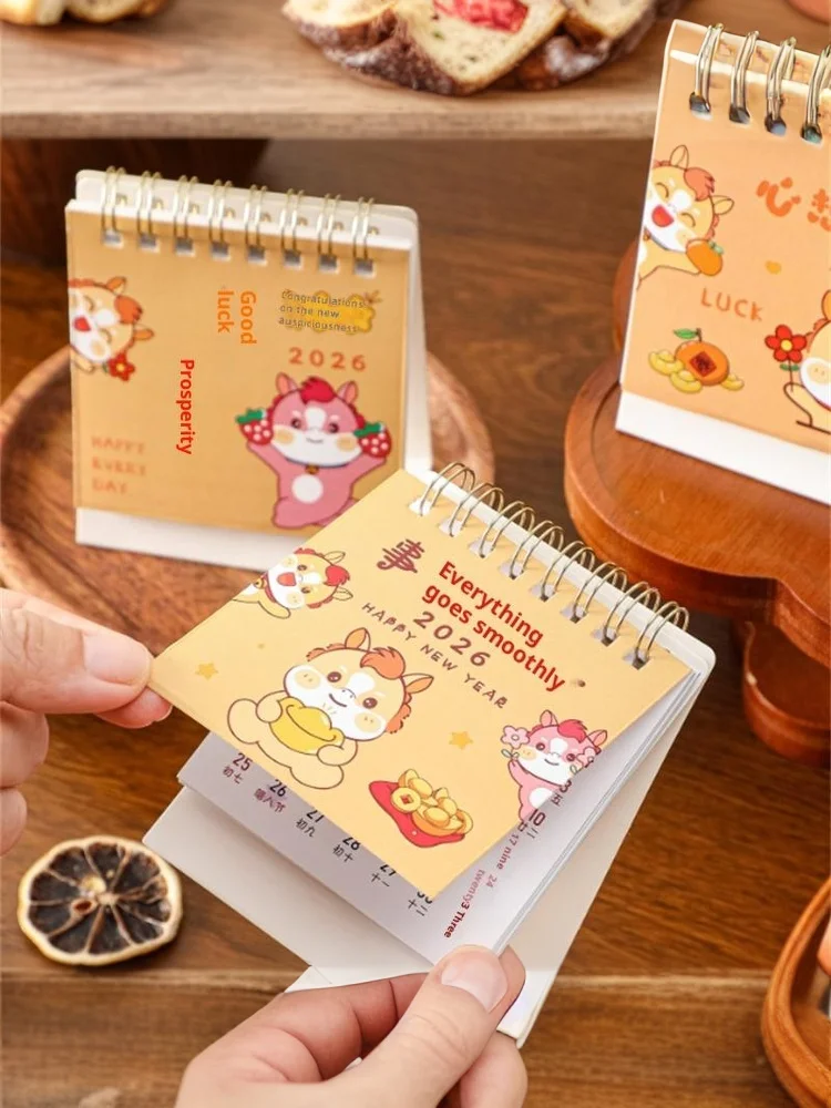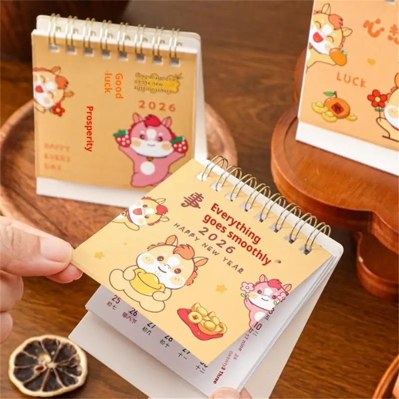 2026 Year Of The Horse Mini Calendars Creative Desk Portable Travel Calendars Cute Pony Pattern Calendar Desktop Decor Ornaments
