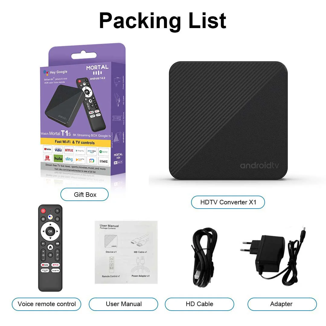 Android14 Smart TV Box Wifi6 AllwinnerH313 Chip Quad core 100M Lan Bluetooth 5 4K video Chromecast Streaming Media Player T1S