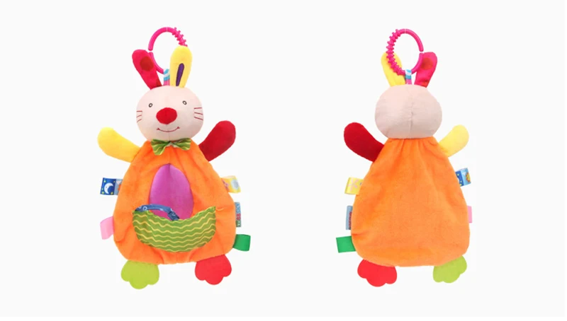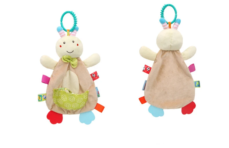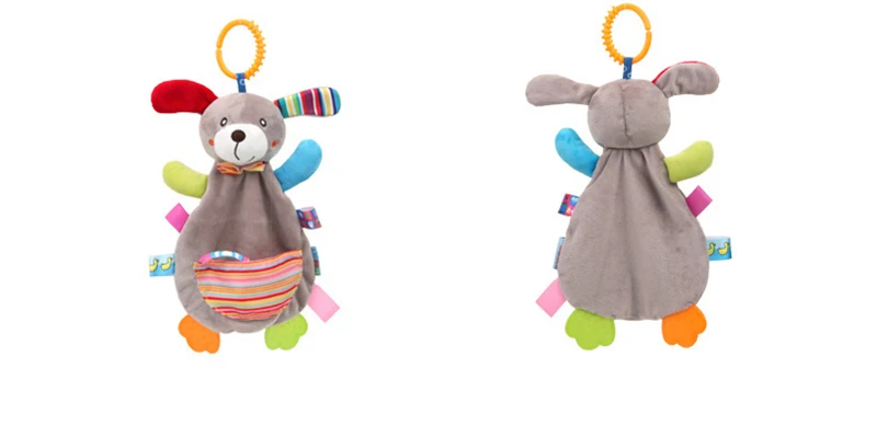 Baby Security Blanket Dog with Tags Teether Rattles Mobile Soft Blanket Snuggle Toy Stuffed Animal for Babies Newborns Gift