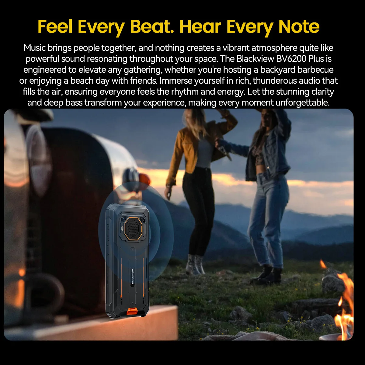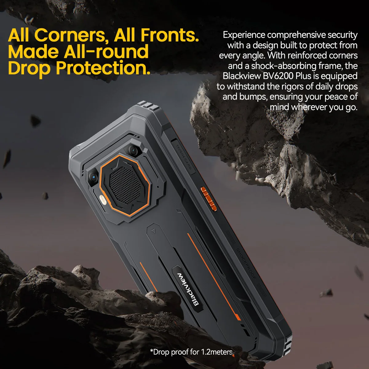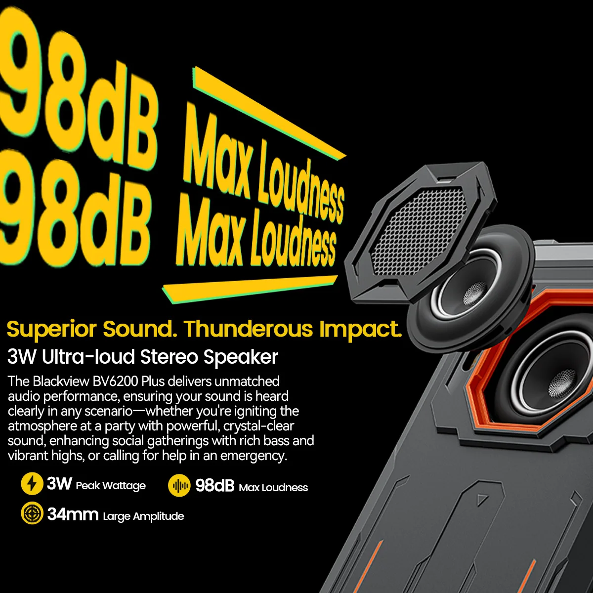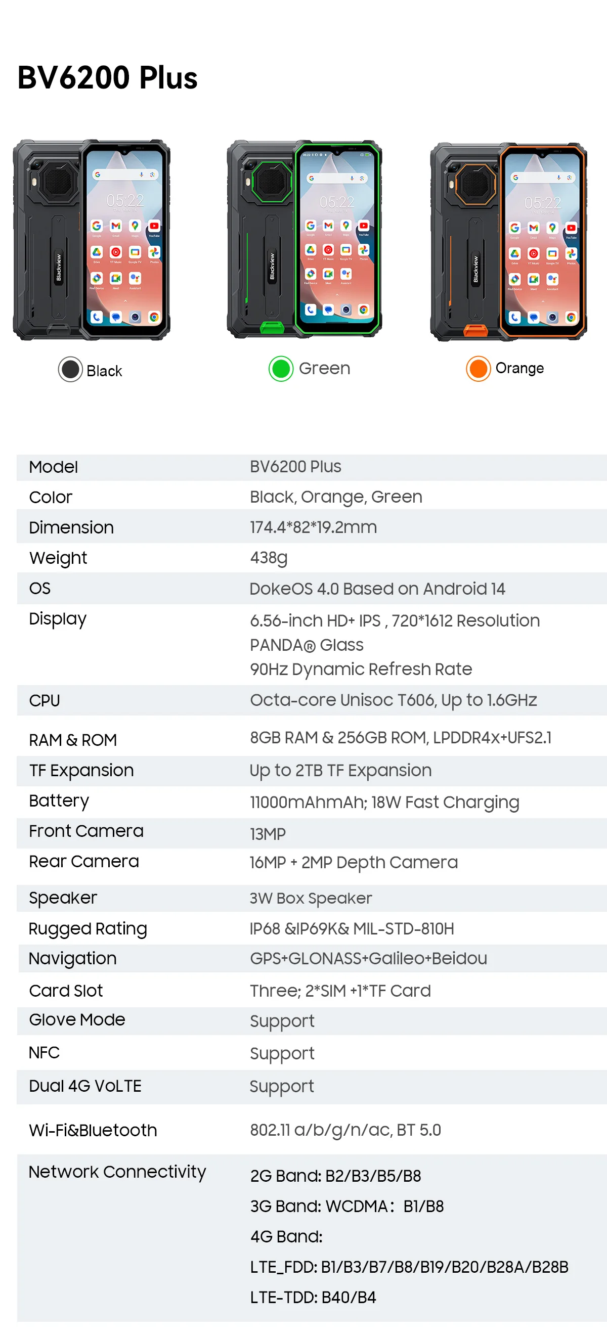 Blackview BV6200 Plus Rugged Phone 3W Ultra-loud Stereo Speaker 6.56-inch HD+ Display 11000mAh NFC Android 14 Cellphone
