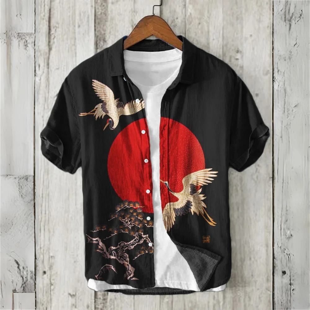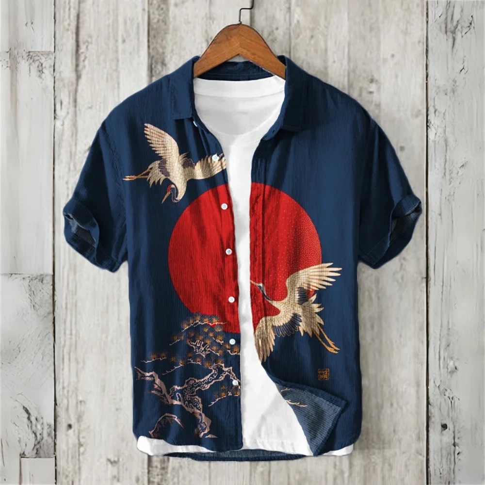 Chinese retro men’s short-sleeved shirt printed linen blended clothing comfortable casual summer men’s large size XS-5XL tops