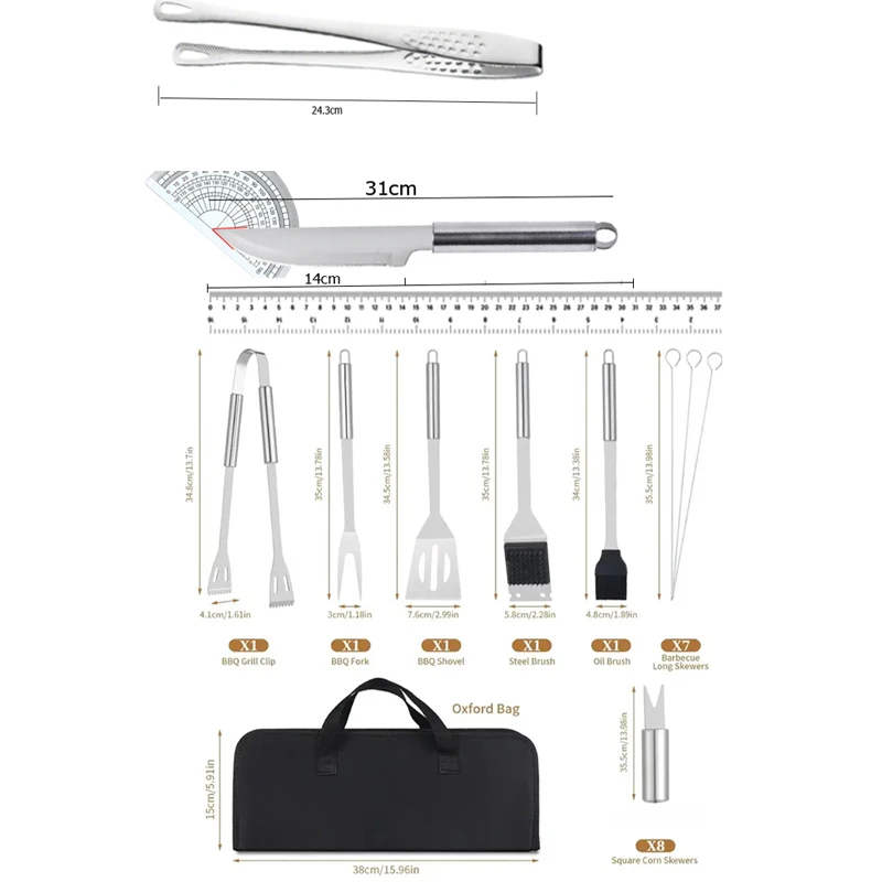 Cooking Oven Set Barbecue Grill Set for Men Women Gift Portable Cloth Bag Stainless Steel BBQ Grilling Combination Tools