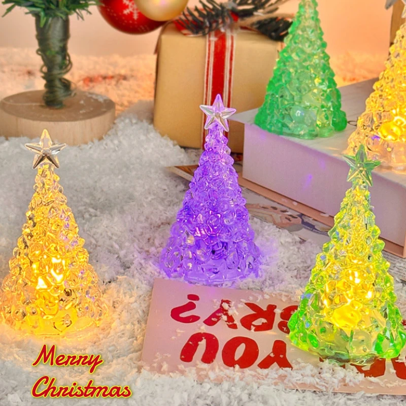Crystal Glowing Christmas Tree Night Light USB Powered Desktop Decor with Warm Colorful LED for Home Office Festival Decor
