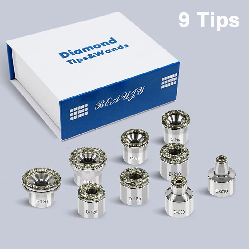 Detachable & Replacement Diamond Heads: Different replaceable diamond dermabrasion heads with different functions. The microdermabrasion diamond tips can be used in different needs and different parts of face or body. Depending on your different areas, choose the appropriate diamond tip.