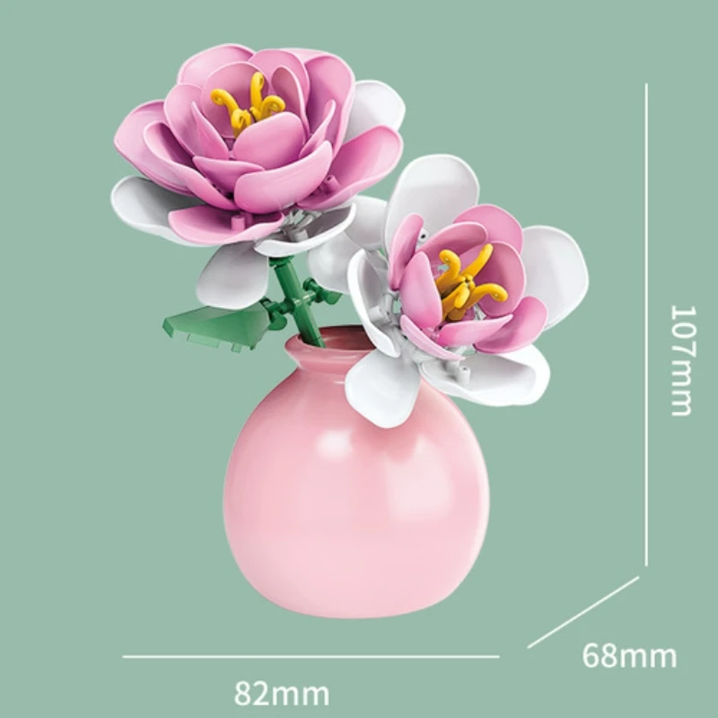 DIY MOC Flowers Bouquet Rose Sunflower Succulents Bonsai Vase Gardens Romantic Building Blocks Model Bricks Kids Sets Kits Toys