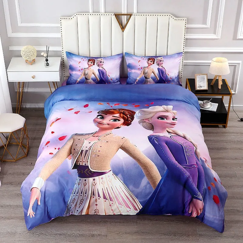 Elsa Anna Princess Bedding Sets Bed Supplies Set Cartoon Girl Duvet Cover Bed Comforter Set Bedding Set Birthday Gift