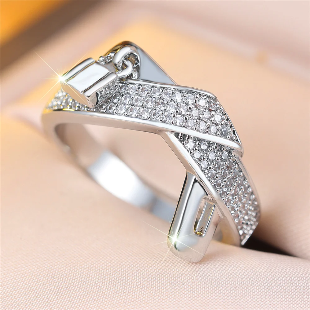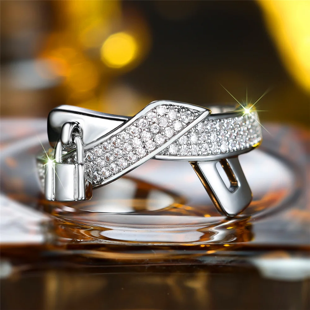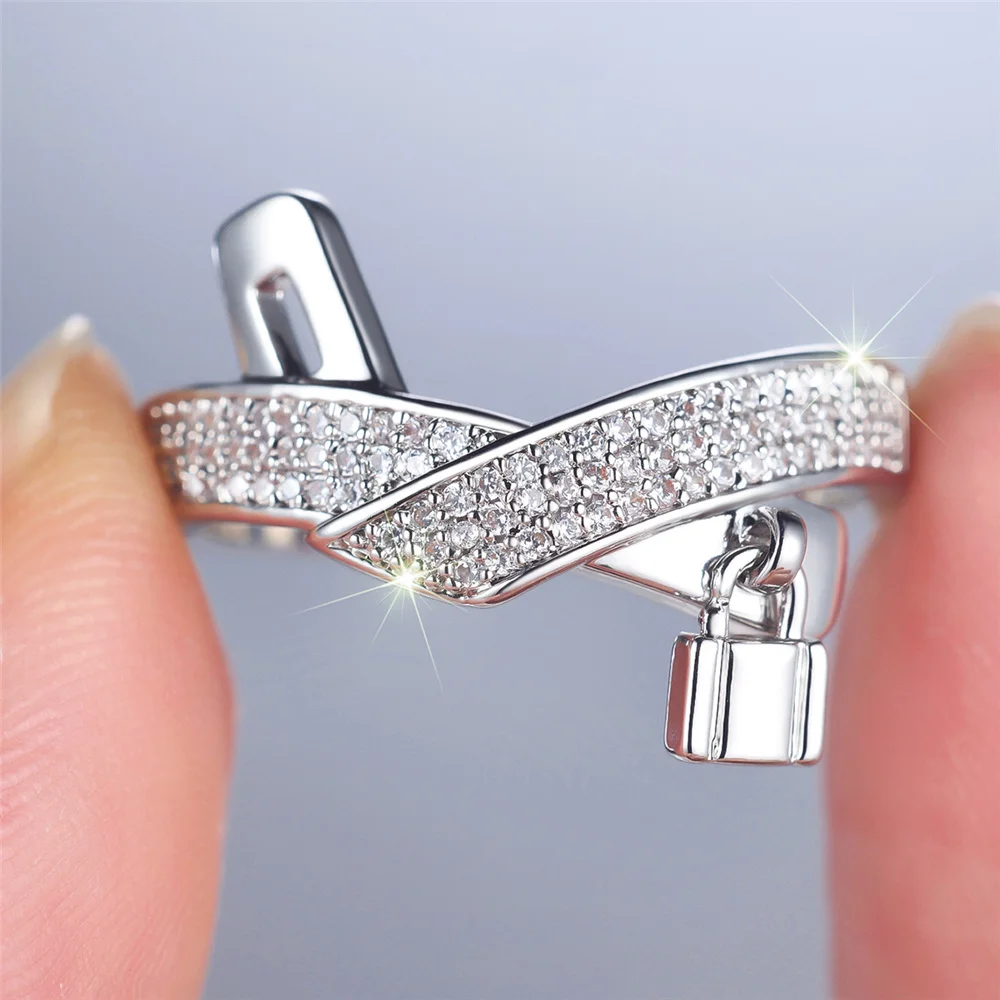 Female Cute White Zircon Stone Silver Color Wedding Jewelry Promise Love Engagement Rings For Women