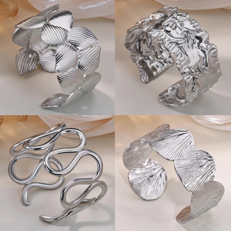 Geometric Twisted Wrap Bangles Bracelets for Women Stainless Steel Daisy Cuff Bangle Bracelet Femme Fashion Waterproof Jewelry