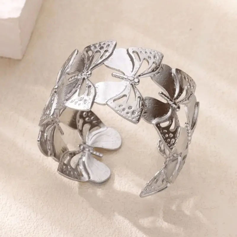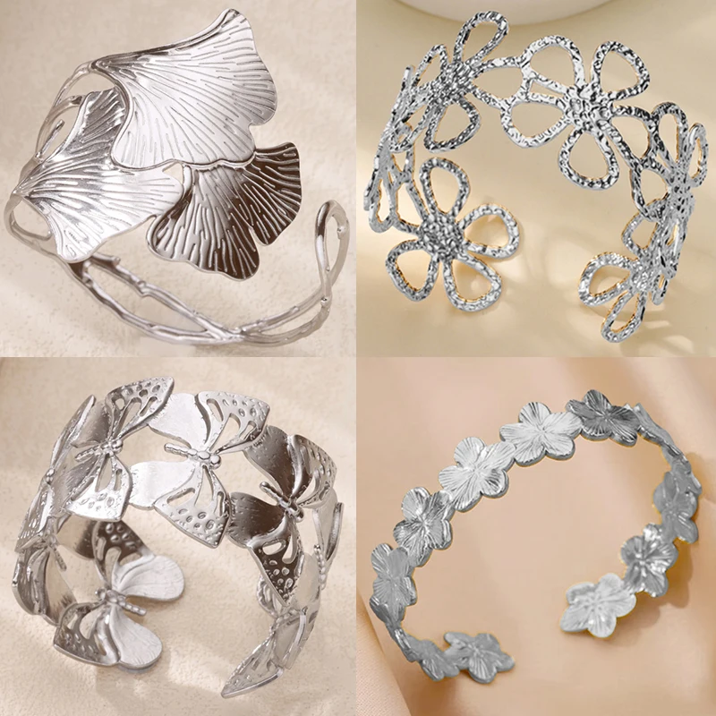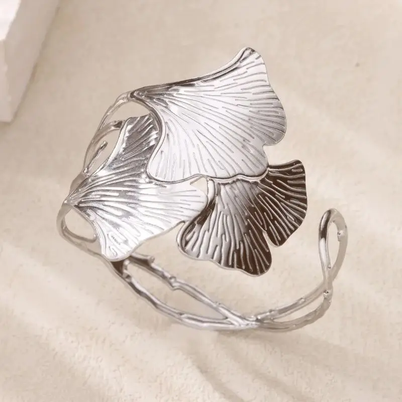 Ginkgo Leaf Bangles for Women Stainless Steel Hollow Flowers Cuff Bangle Bracelet femme Fashion Wedding Waterproof Jewelry