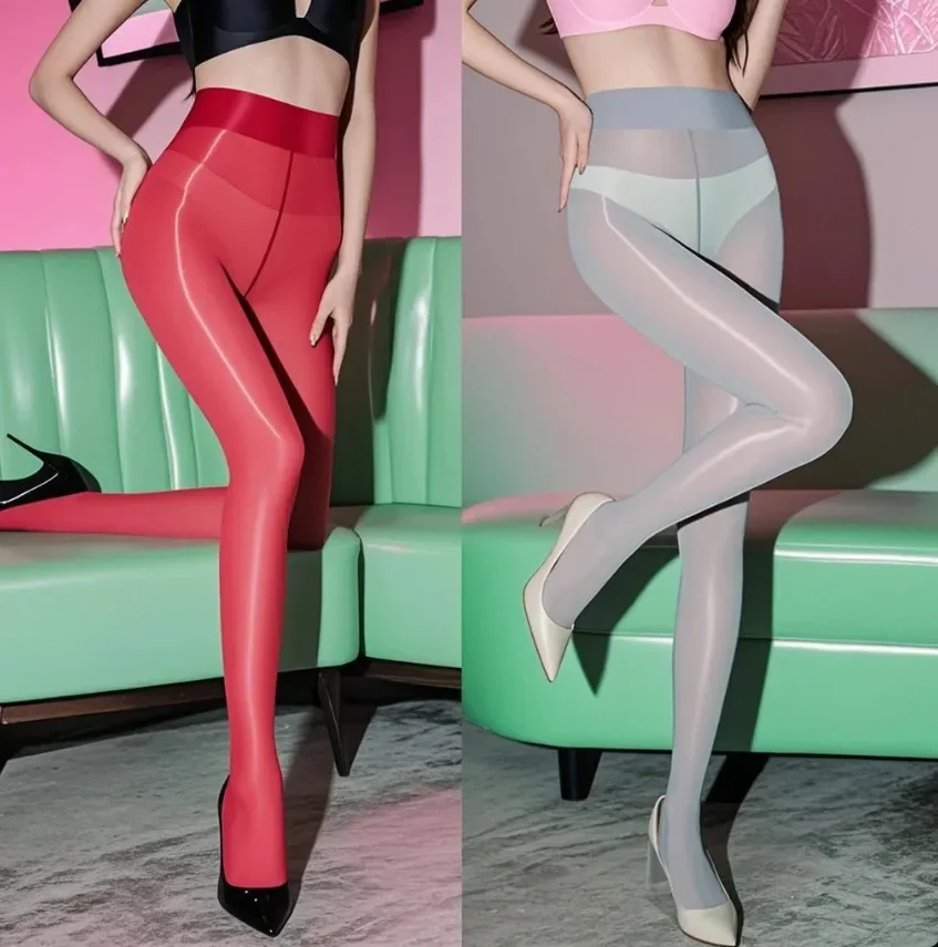 Glossy Horse Oil Women’s Pantyhose Sexy Open-Crotch Long Tube Socks White Silk Seamless Black Silk Non-Slip Chinese Made
