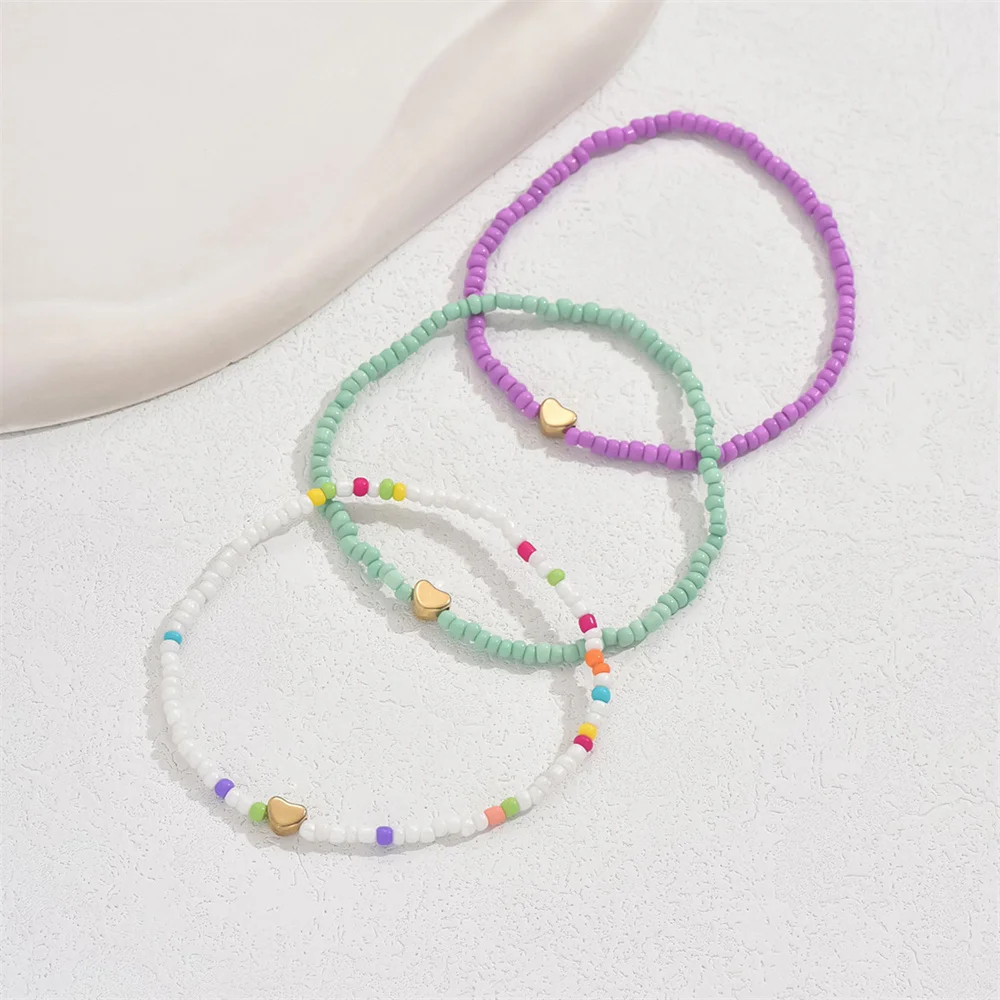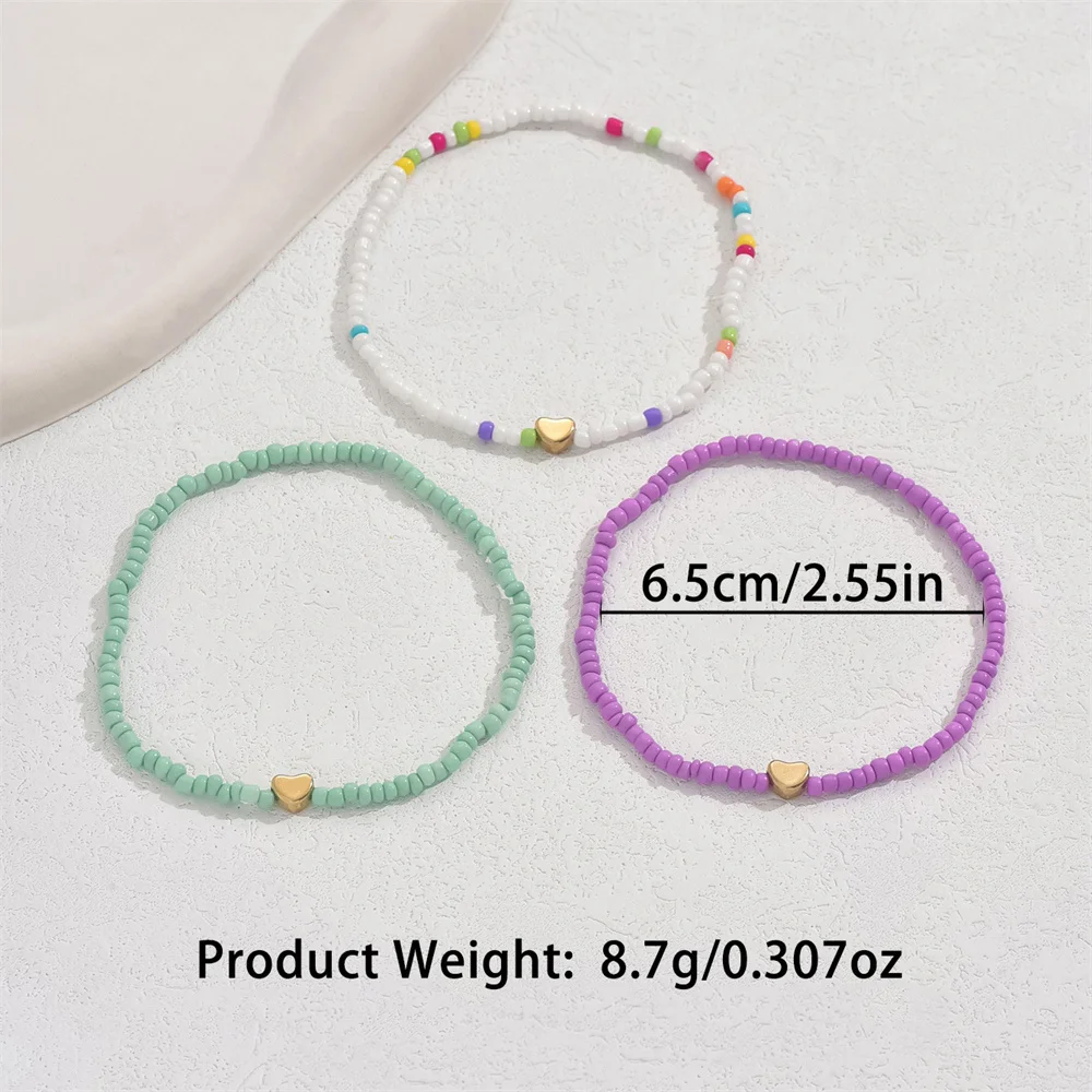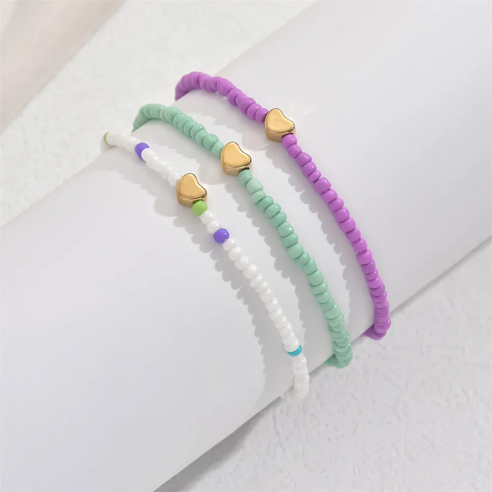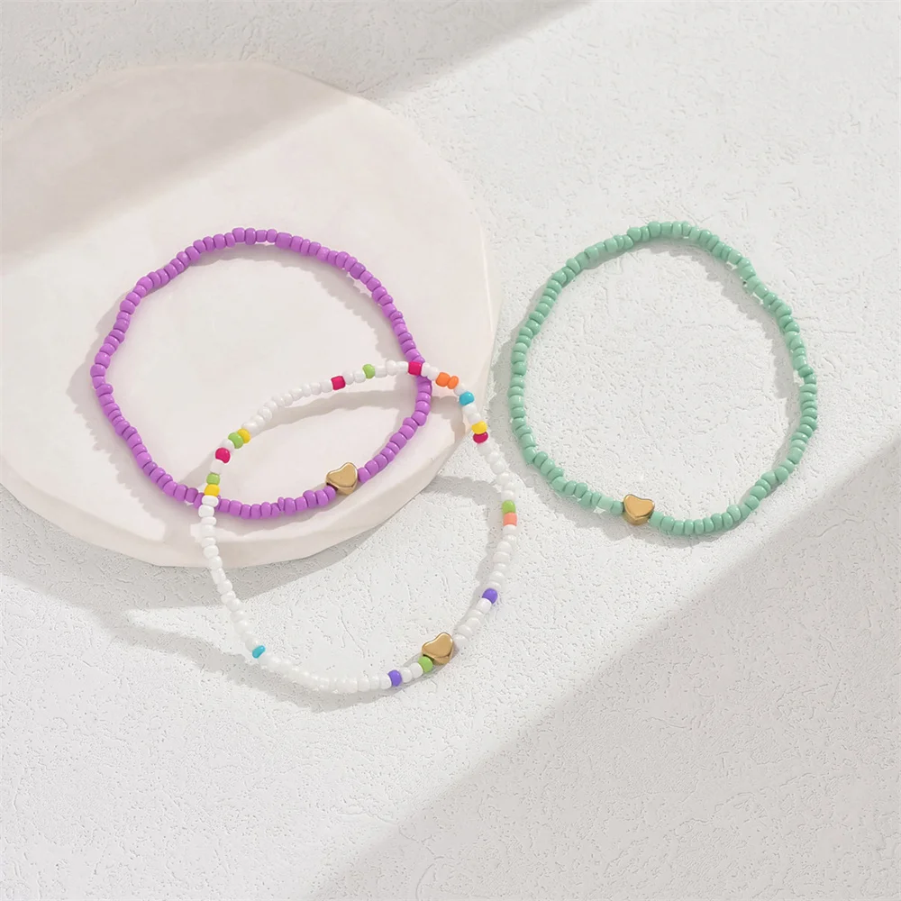 Gold Color Love Heart Foot Chains Simple Fashion Rainbow Beads Anklets For Women Ankle Bracelet Beach Jewelry Summer Accessories