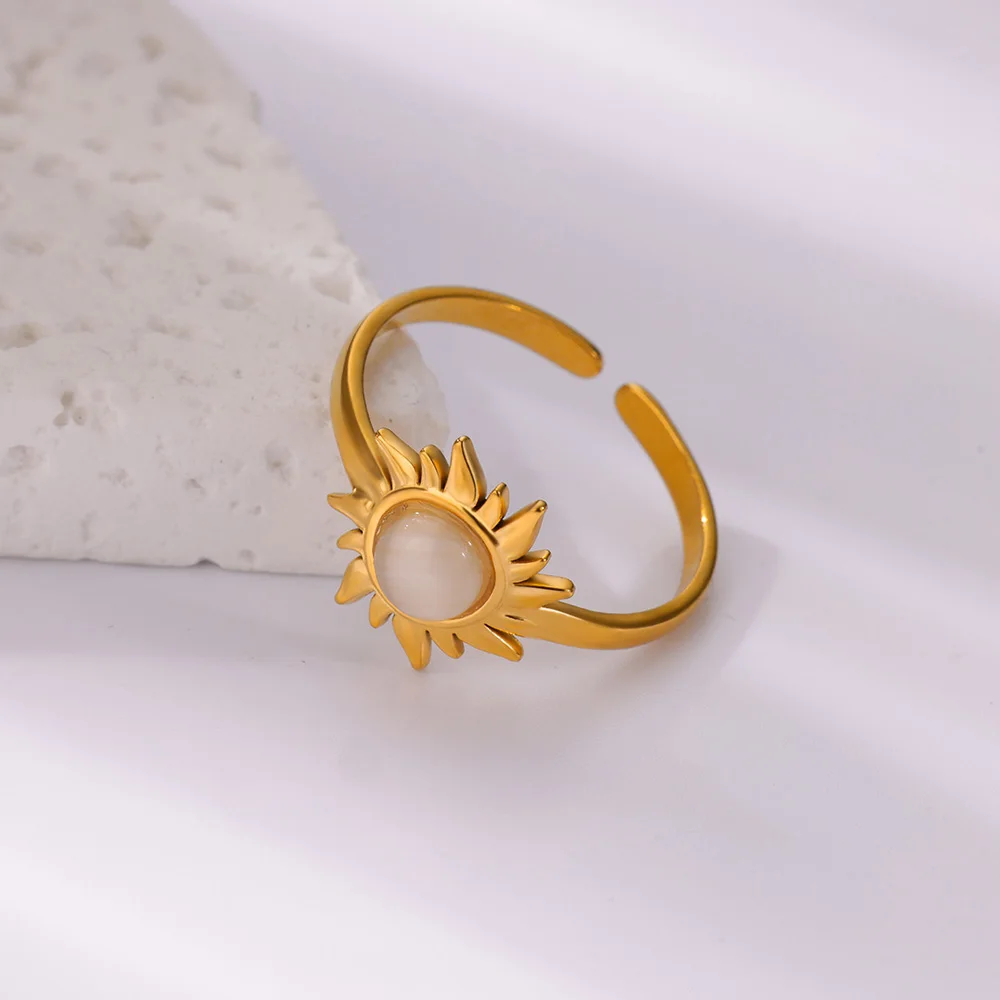 Gold Color Opal Sun Rings for Women Stainless Steel Open Adjustable Wedding Ring Aesthetic Waterprood Jewelry Gift anillos mujer