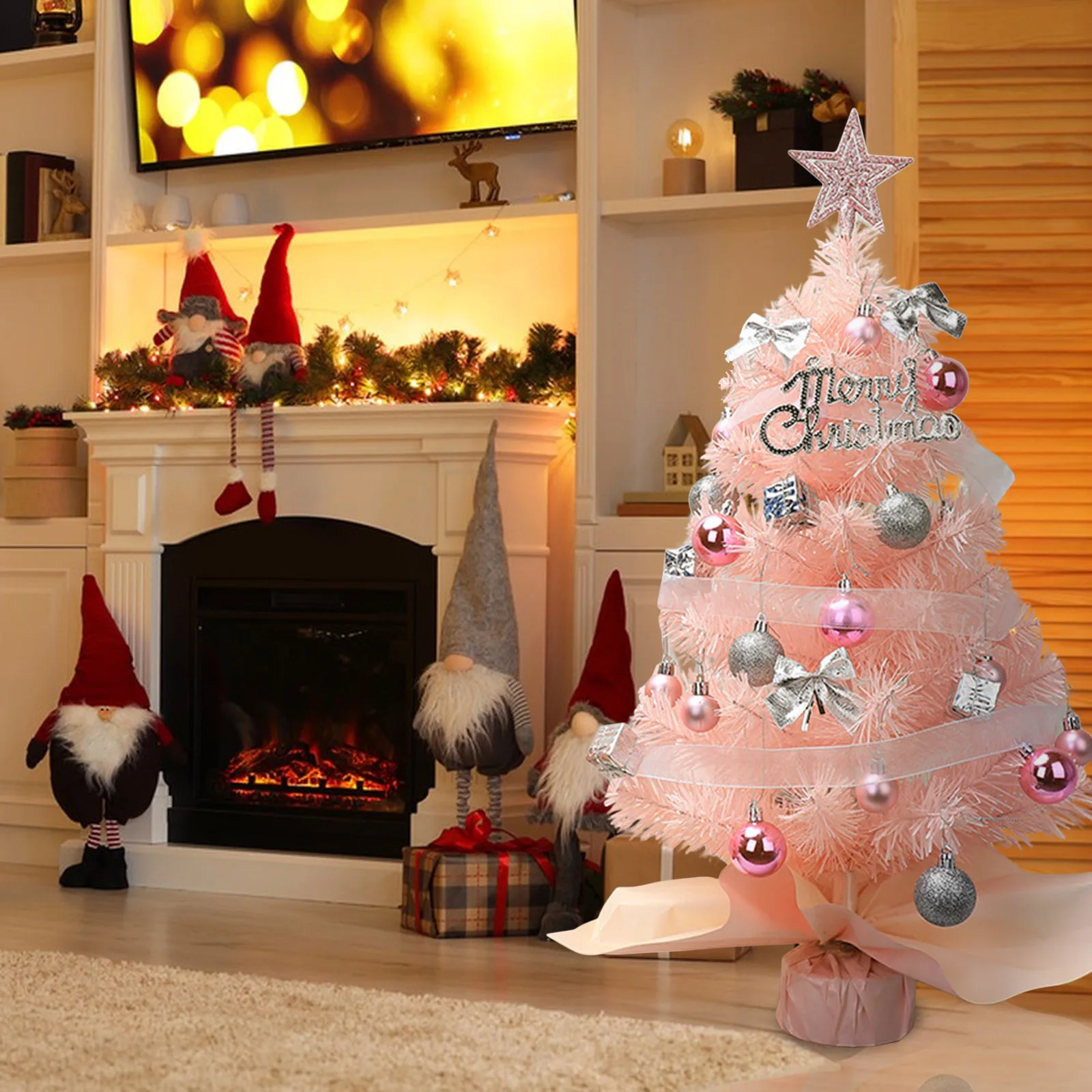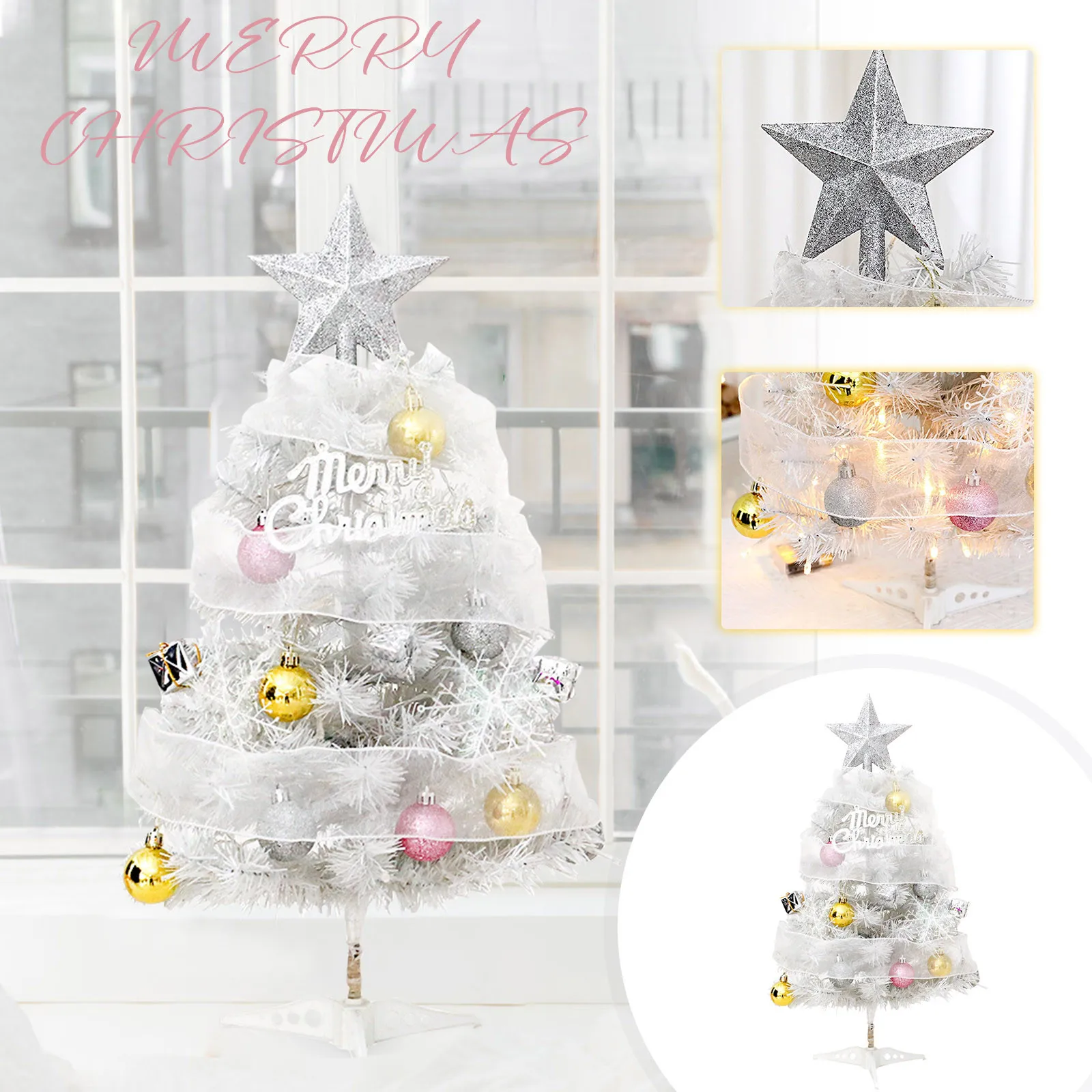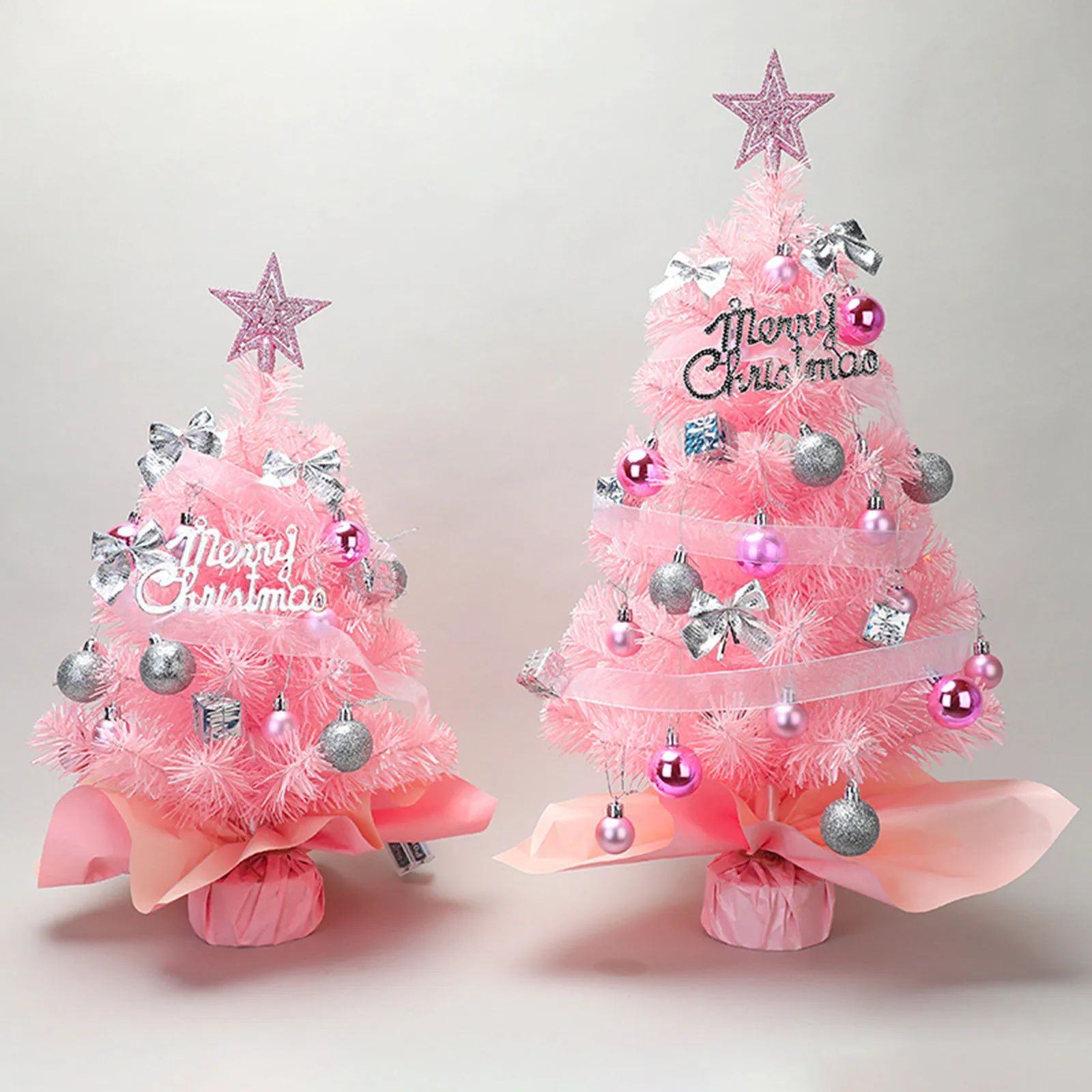 Hot Sale 45/60cm Christmas Tree With lights White/Pink Christmas Tree With Star Christmas Miniature Pine With Ornaments