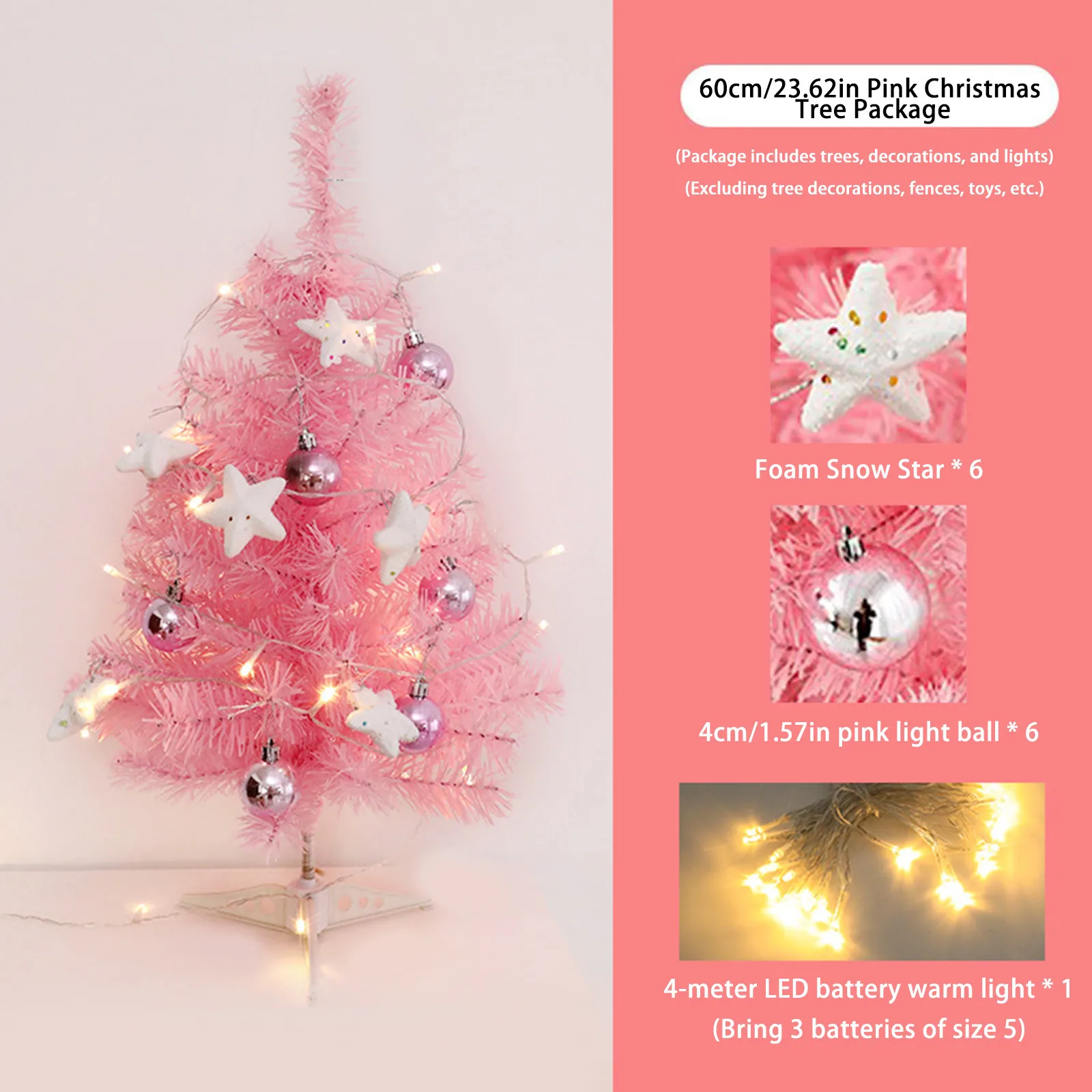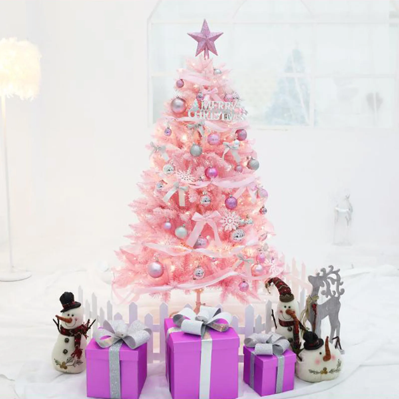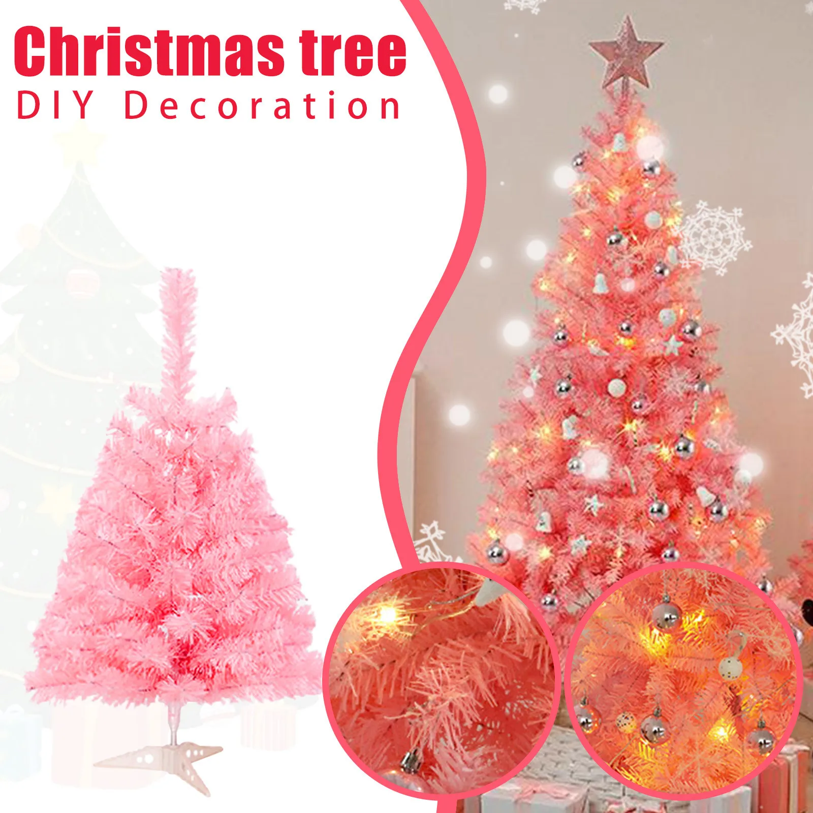 Hot Sale 45/60cm Christmas Tree With lights White/Pink Christmas Tree With Star Christmas Miniature Pine With Ornaments