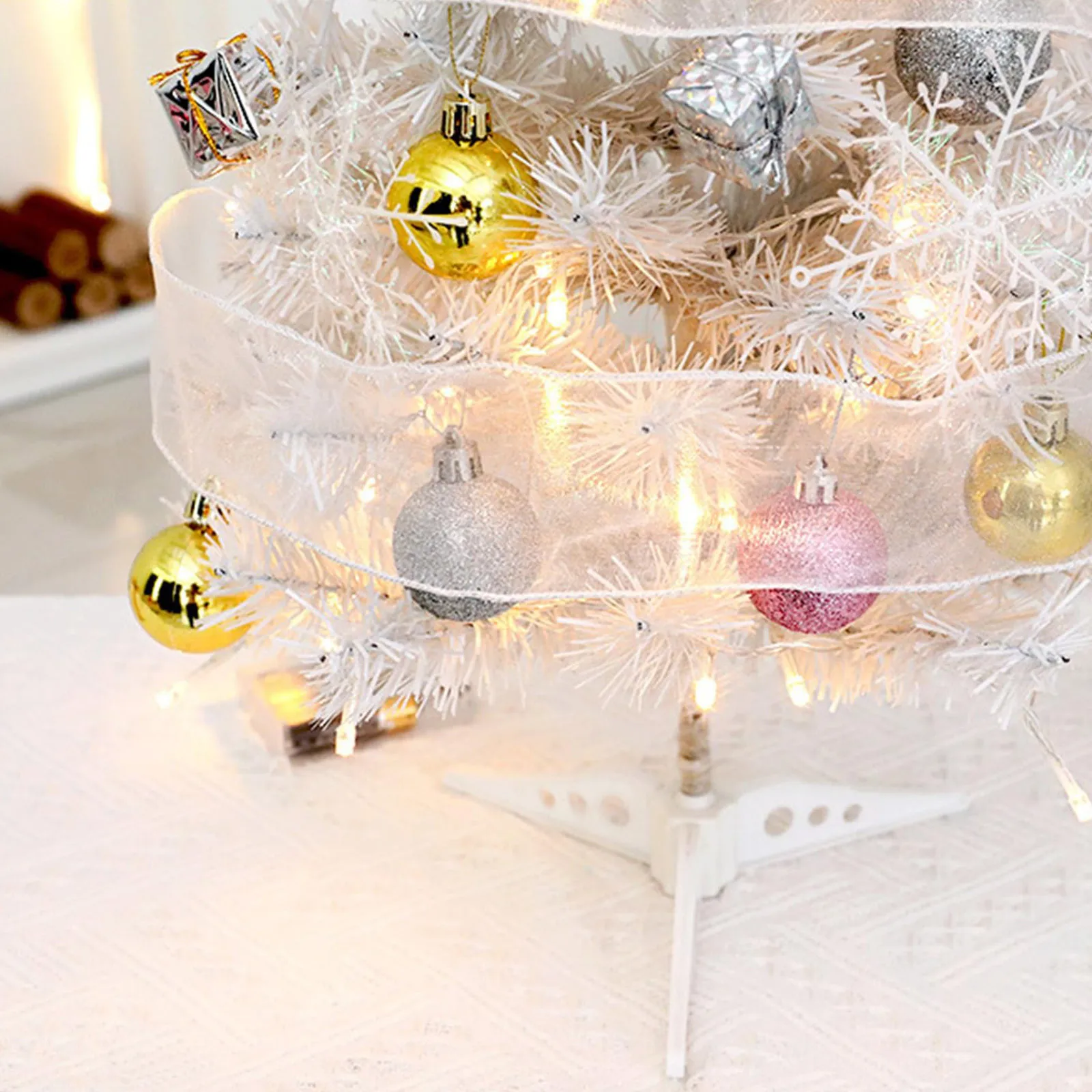 24 PCS Tabletop Christmas Tree With Lights,1.5/2ft Christmas Tree With Star Led String Light For Home Desktop Xmas Tabletop White For Christmas Decoration