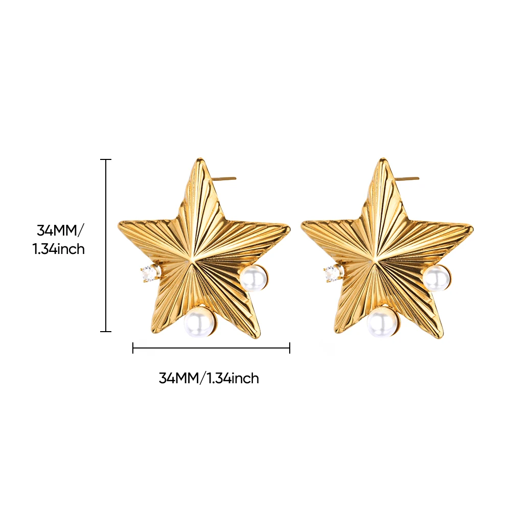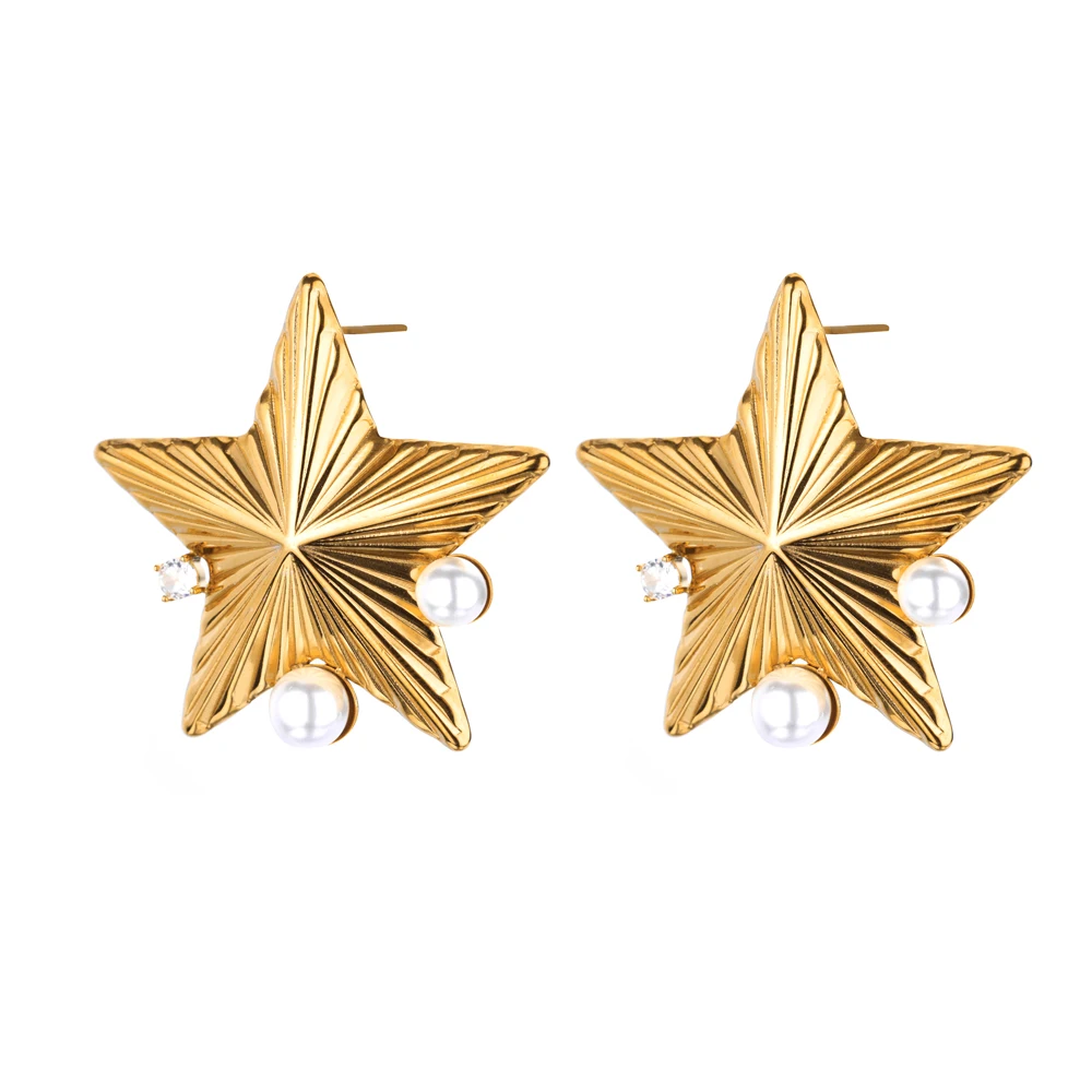 Imitation Pearl Star Earrings for Women Stainless Steel Gold Color Stud Earrings 2025 Trend Piering Wedding Christmas Jewelry