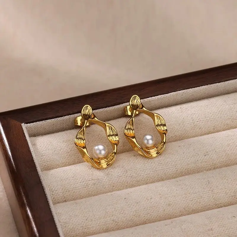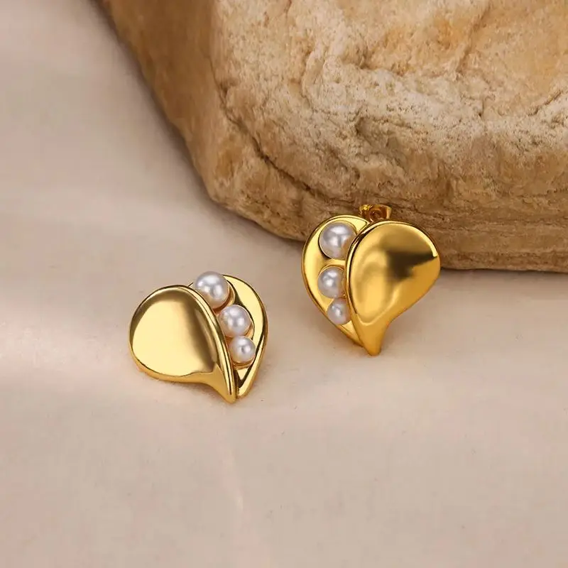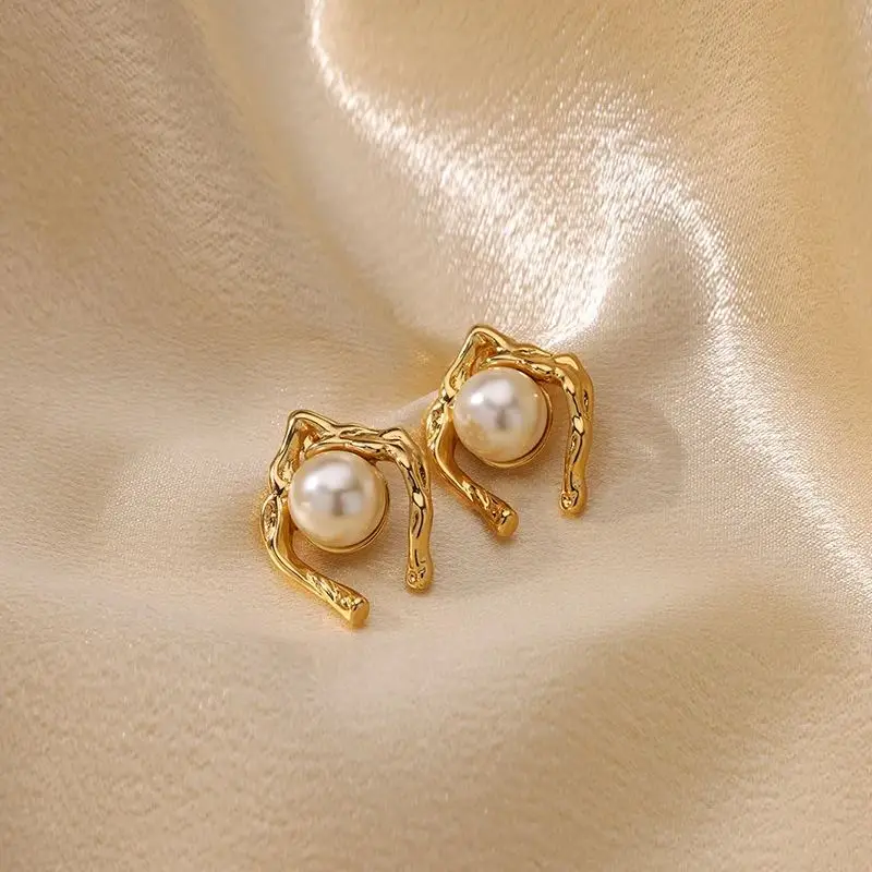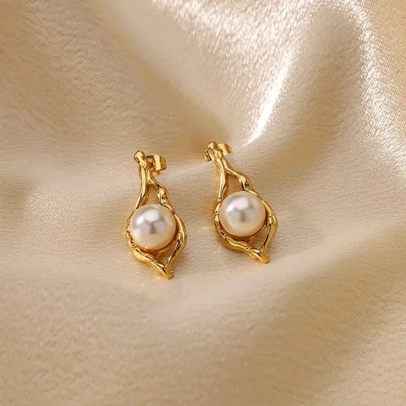 Irregular Imitation Pearl Earrings for Women Stainless Steel Gold Color Stud Earrings 2024 Trend Wedding Jewelry Gift New In