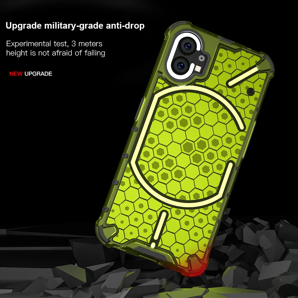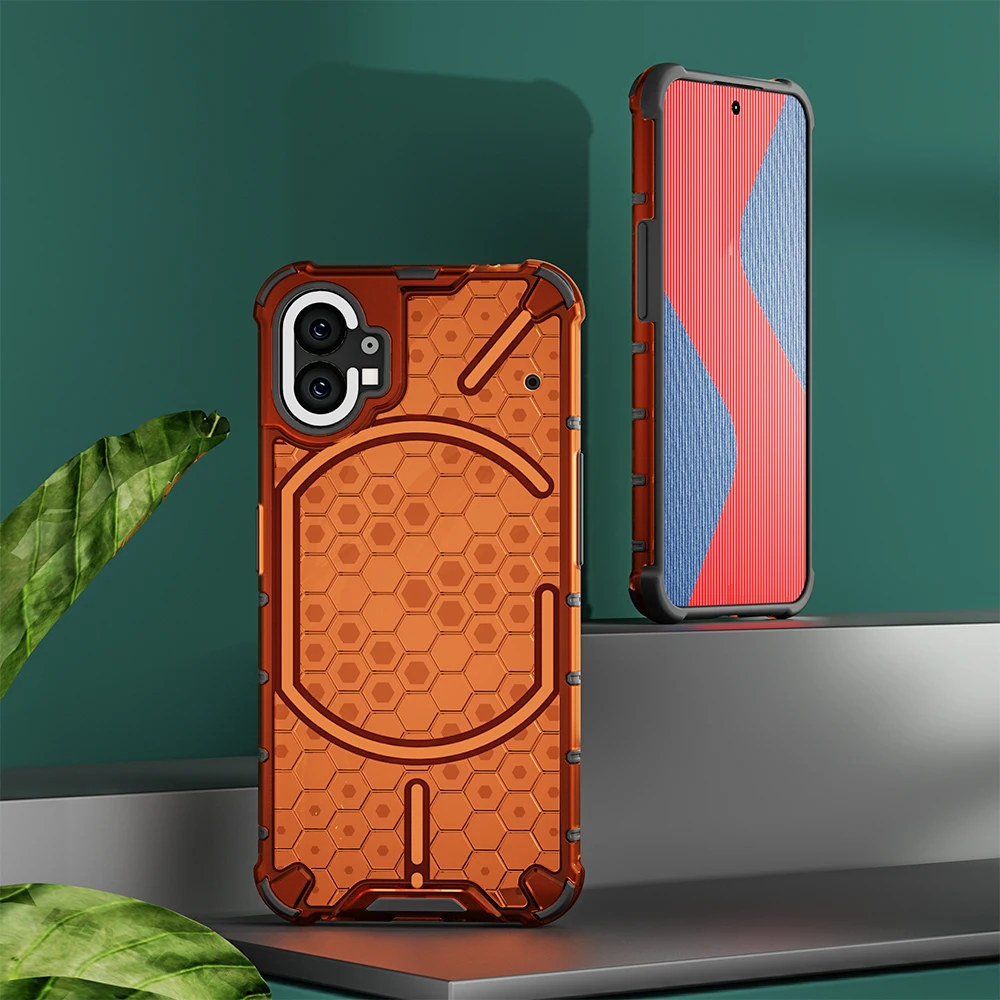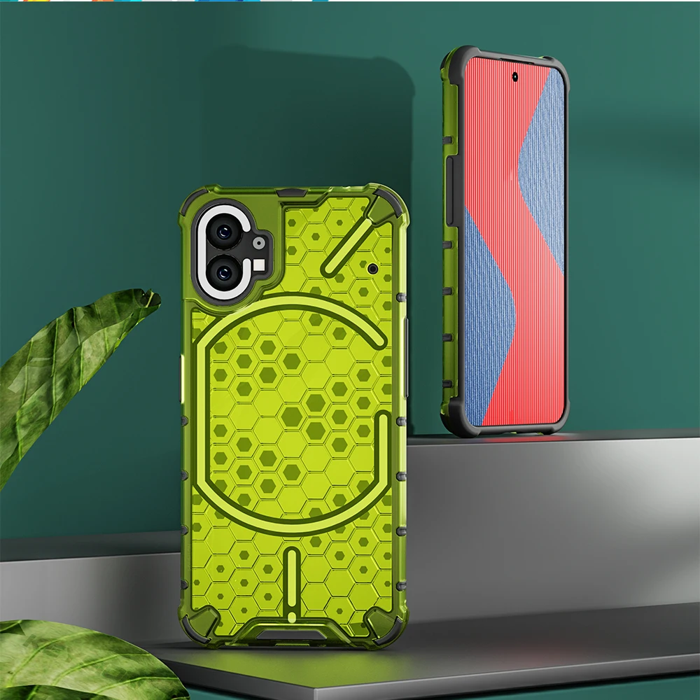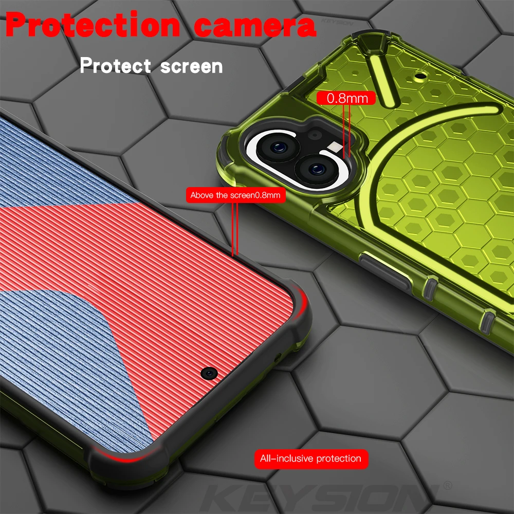 KEYSION Shockproof Case for Nothing Phone 2 1 Soft Silicone+PC Transparent Honeycomb Phone Back Cover for Nothing Phone 2