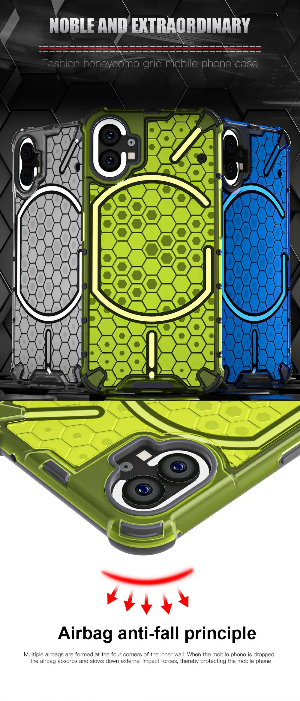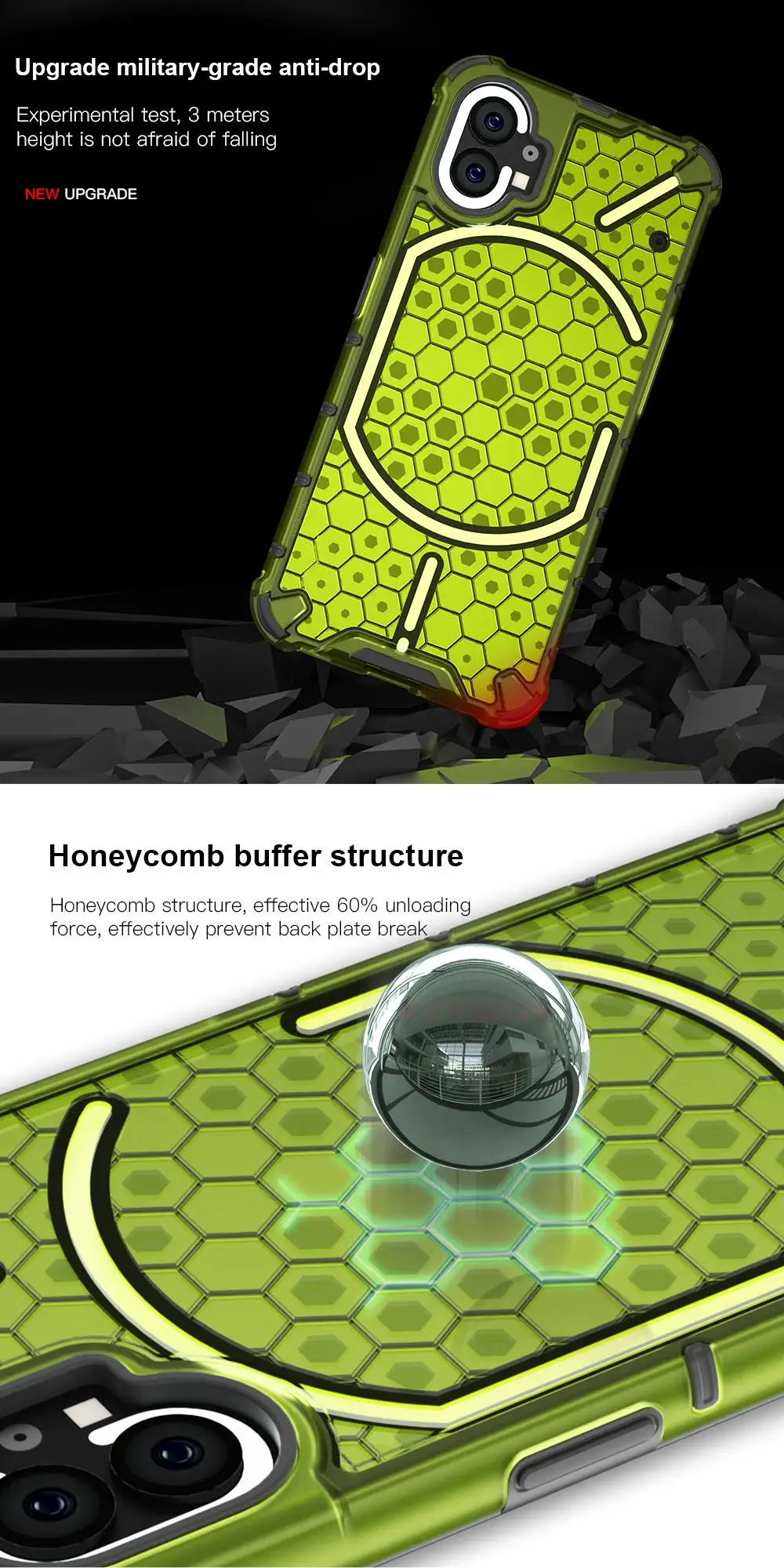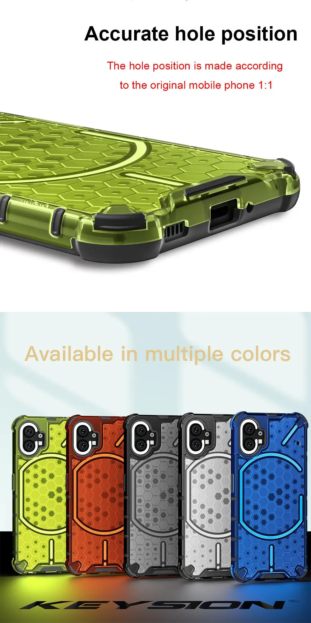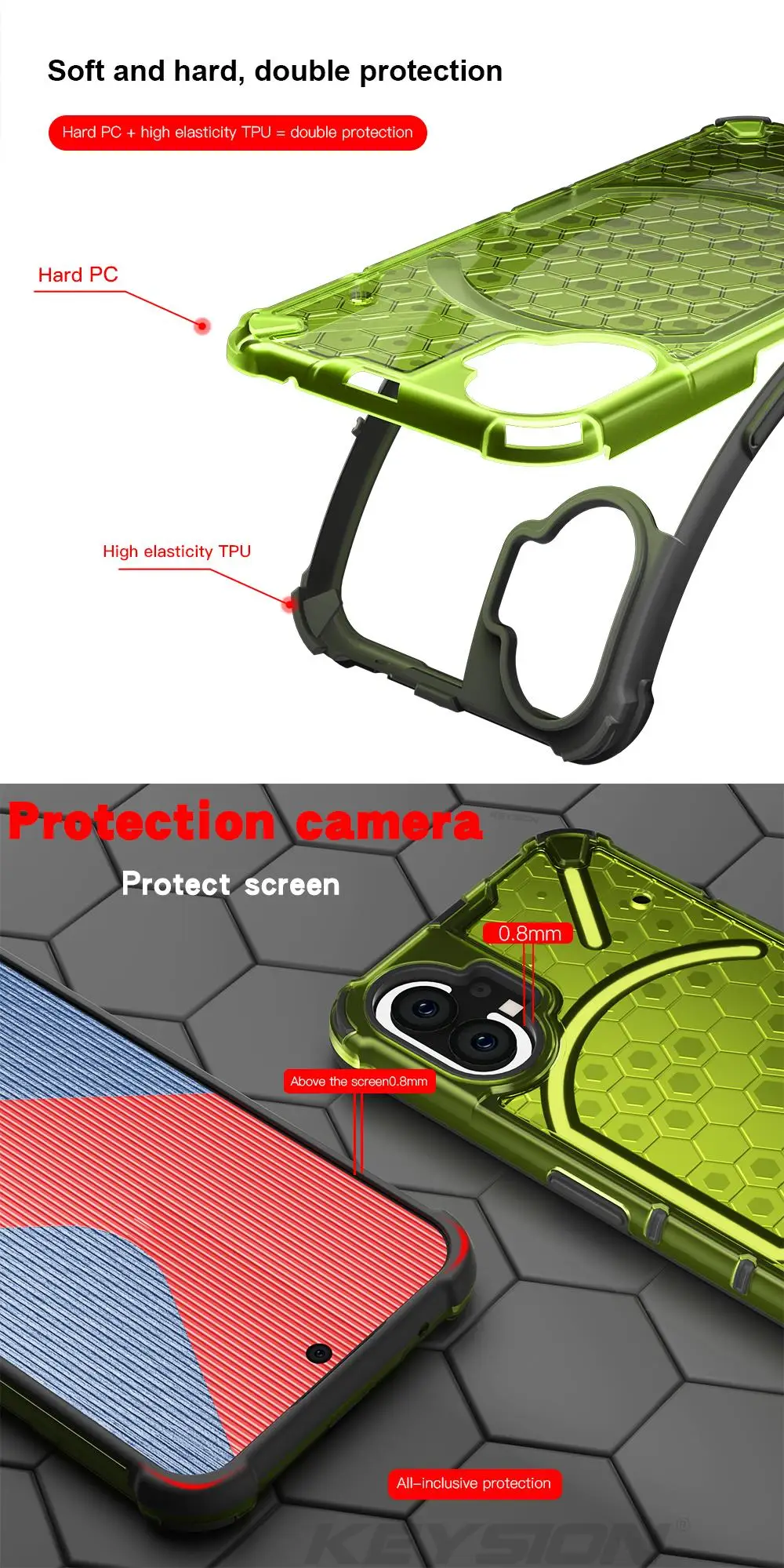 KEYSION Shockproof Case for Nothing Phone 2 1 Soft Silicone+PC Transparent Honeycomb Phone Back Cover for Nothing Phone 2