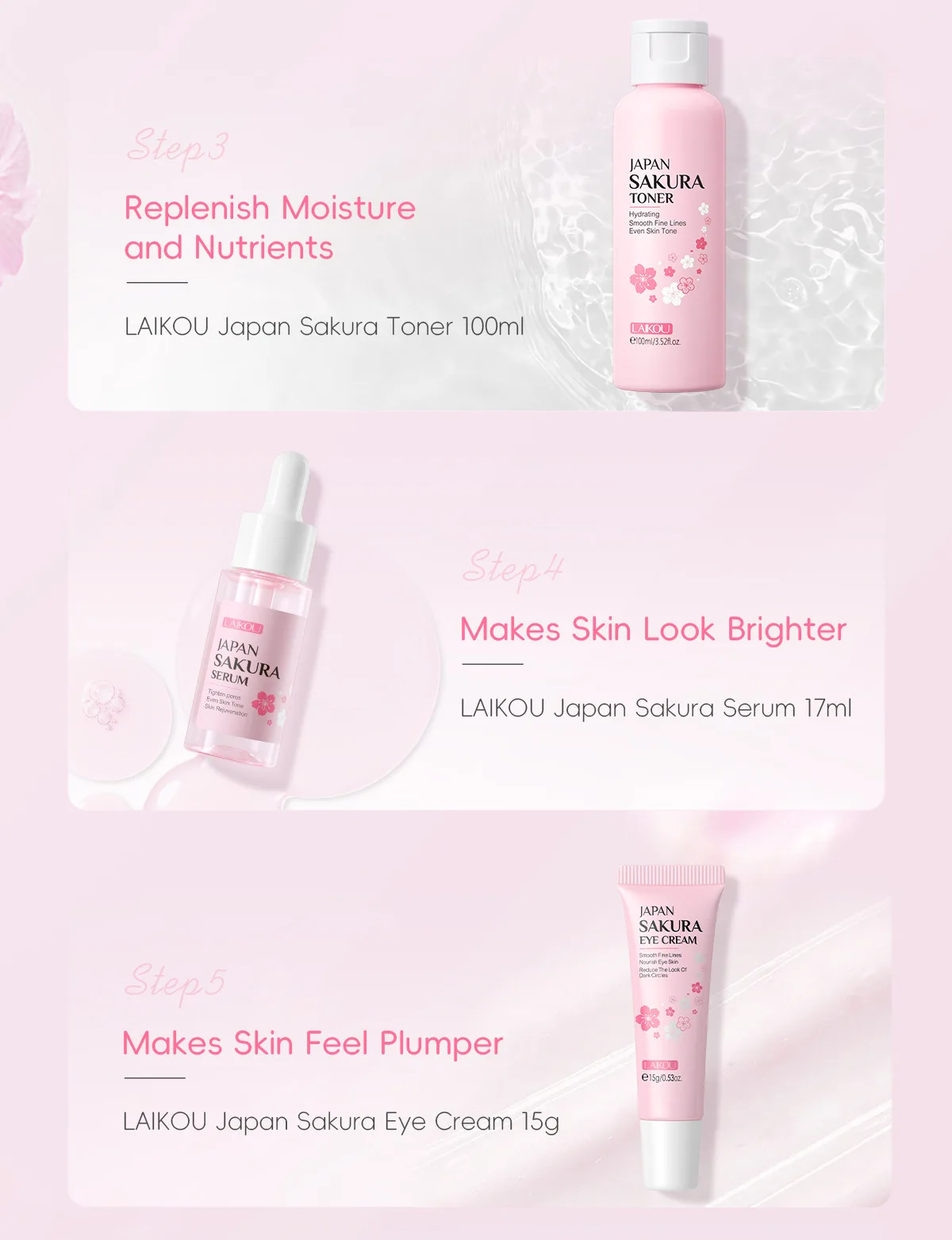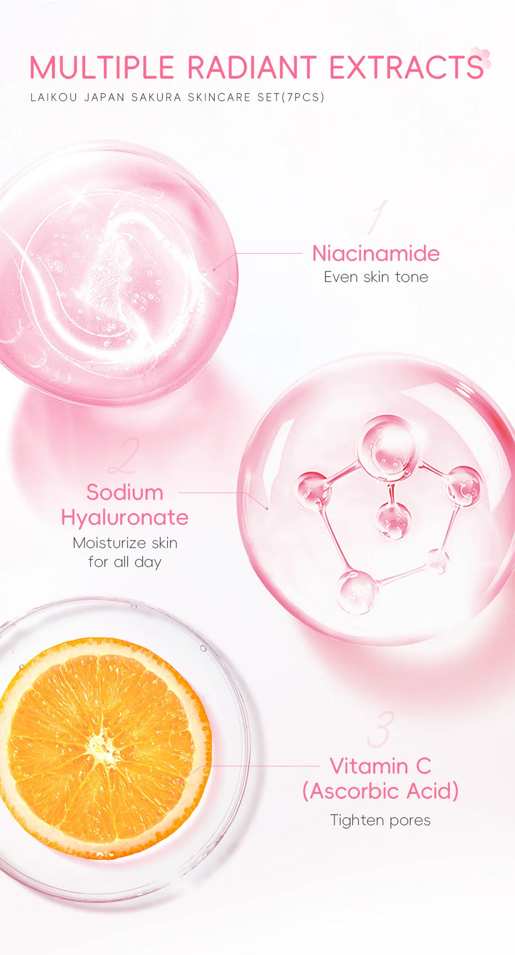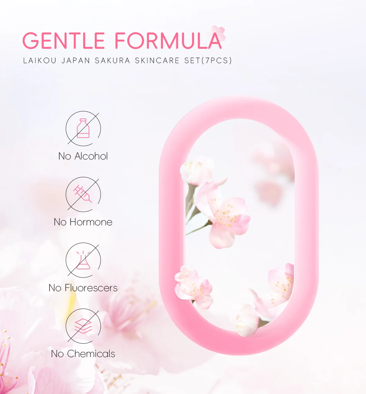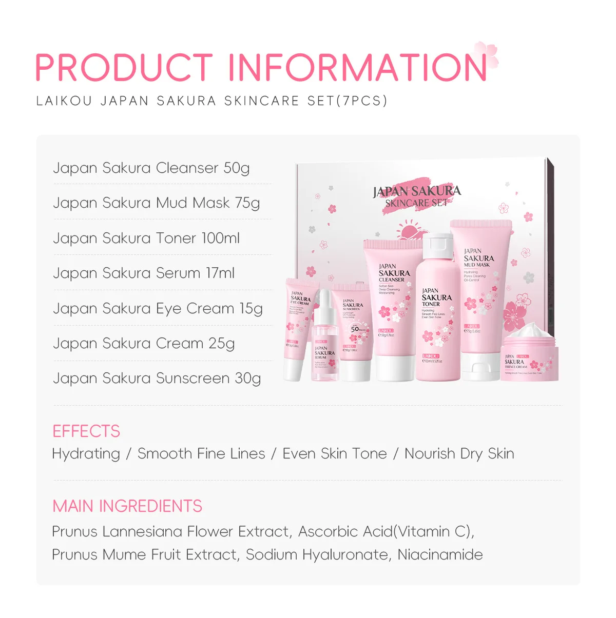 JAPAN SAKURA SKINCARE SET 7PCS:Hydrating,Smooth Fine Lines,Even Skin Tone,Heal Dry Skin