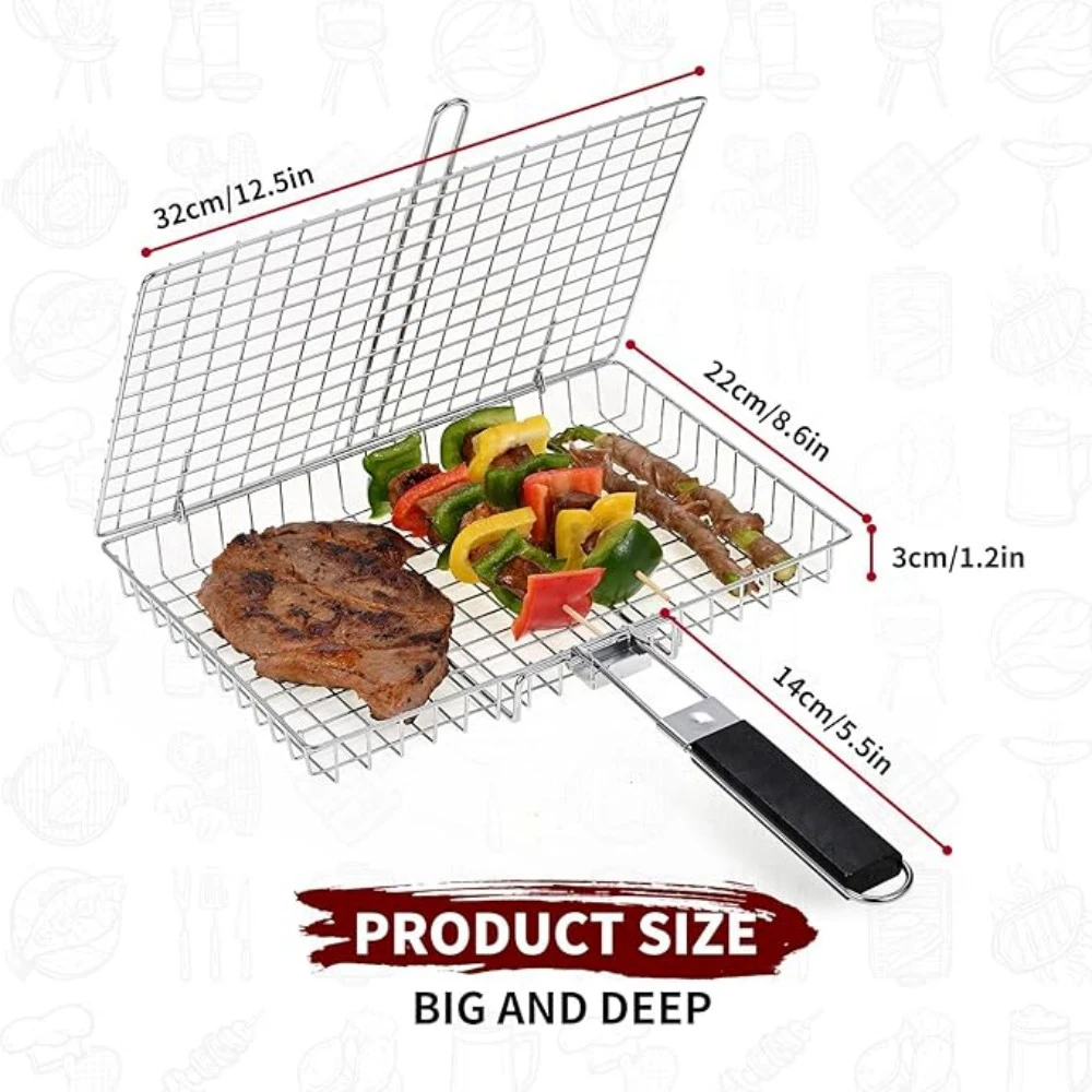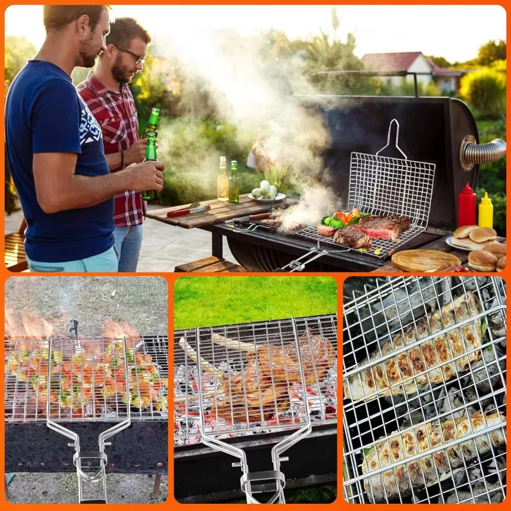 Large Capacity Portable Stainless Steel BBQ Grill Basket with Handle Folding Fish Vegetables Shrimp Cooking Tool