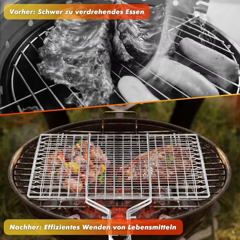 【Safety Meets Convenience】:Our barbecue basket is designed with your safety and ease in mind. Extended handles and a reliable locking mechanism allow you to flip food more comfortably and securely without the fear of burns.