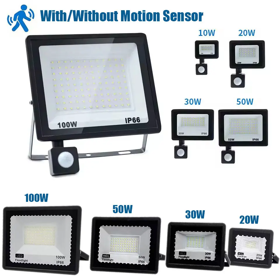 Led Flood Light Pir Motion Sensor 10W 20W 30W 50W 100W Ac220V Ip66 Waterproof Spotlight Street Floodlight Outdoor Searchlight