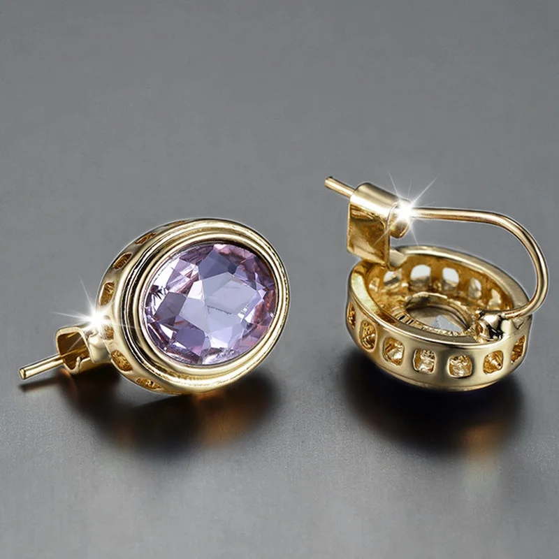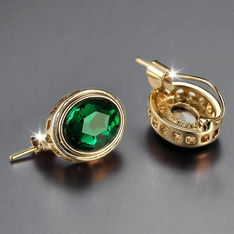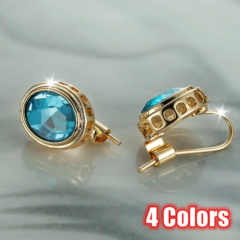 Luxury Crystal Rose Gold Silver Color Bridal Hoop Earrings Multicolor Zircon Oval Stone Boho Jewelry For Women