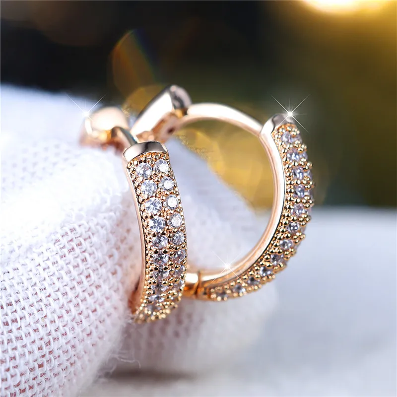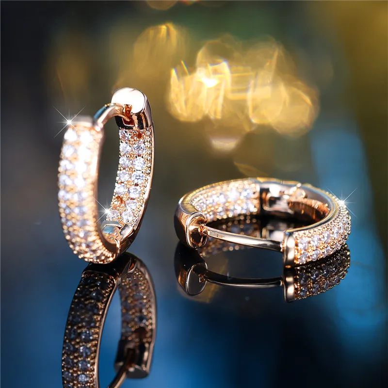 Luxury Female White Zircon Stone Clip Earrings Charm Gold Color Wedding Jewelry For Women