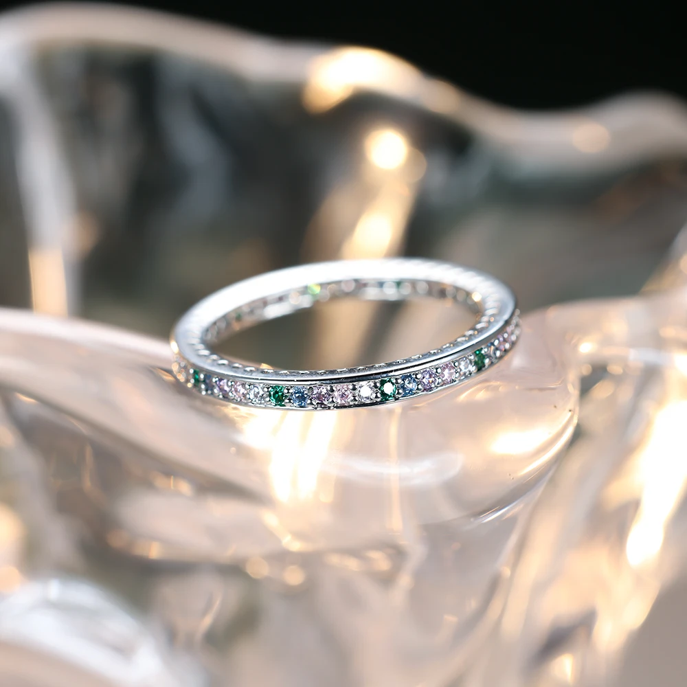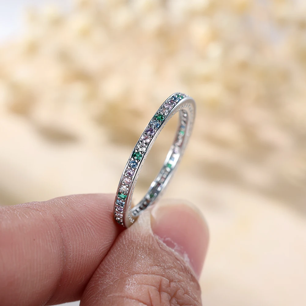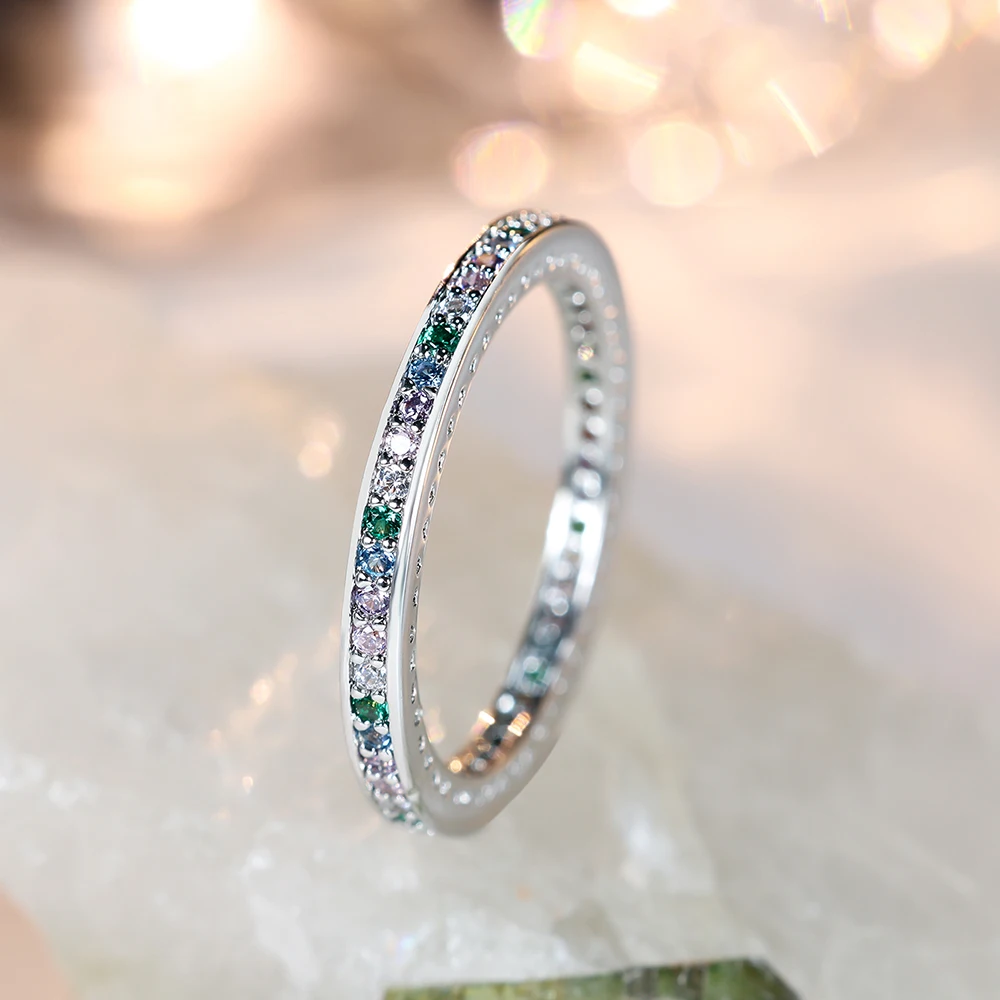 Minimalist Small Rainbow Zircon Stone Thin Rings For Women Silver Color Stacking Wedding Bands Female Daily Party Finger Jewelry