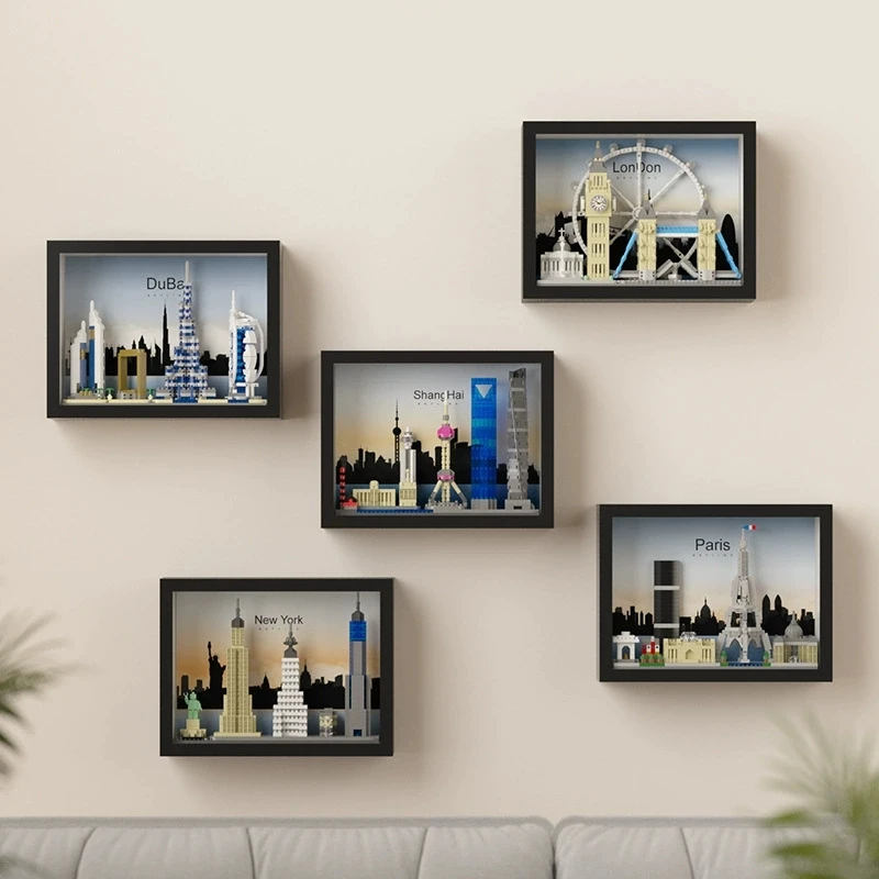 MOC Architecture Skylines Paris London New York Dubai Shanghai Street View Building Block Mini Building Block Decoration Toy