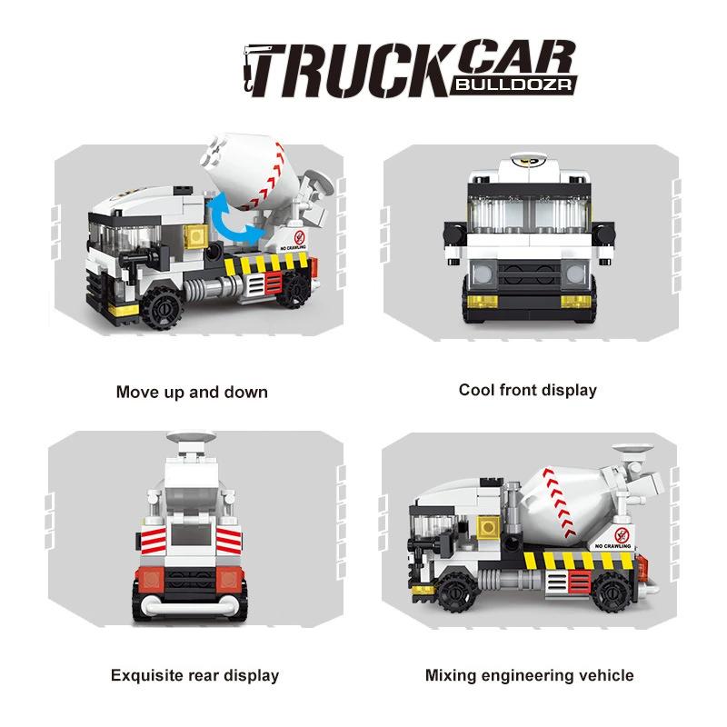 NEW Heavy Engineering Cement Mixer Fire Engine Mini Loader Truck Police Car Classic Model Building Blocks Sets Bricks Toy City