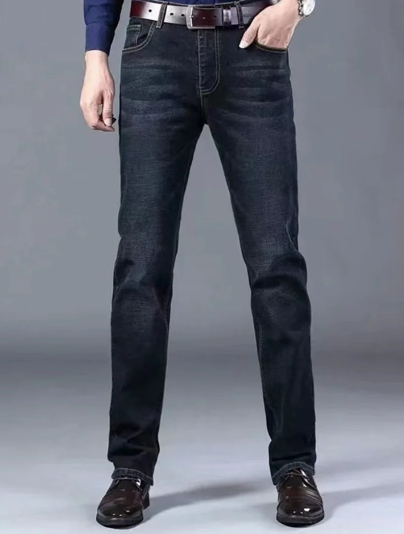 New Men Light Luxury Stretch Slim Fit Pants Comfortable Soft Business Fashion Straight Casual Denim Trousers Male Brand Clothing