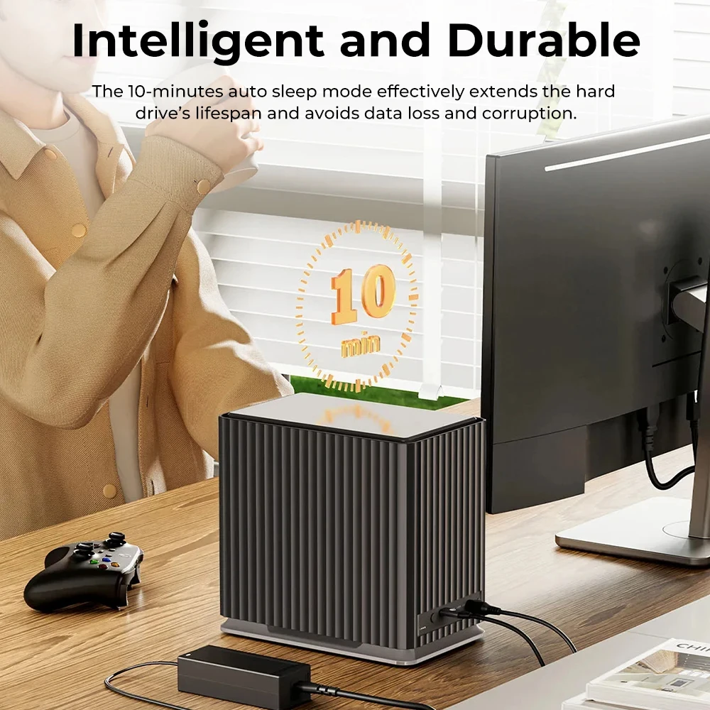 Using a heat dissipation design with a 120mm fan and large holes makes the HDD more durable and keeps data safer