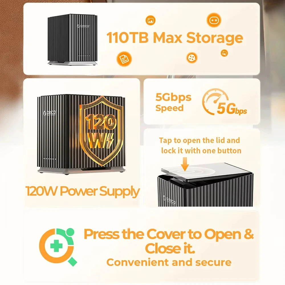 5 Bay Supporting Hard Drive Capacity:110TB(5X22TB)