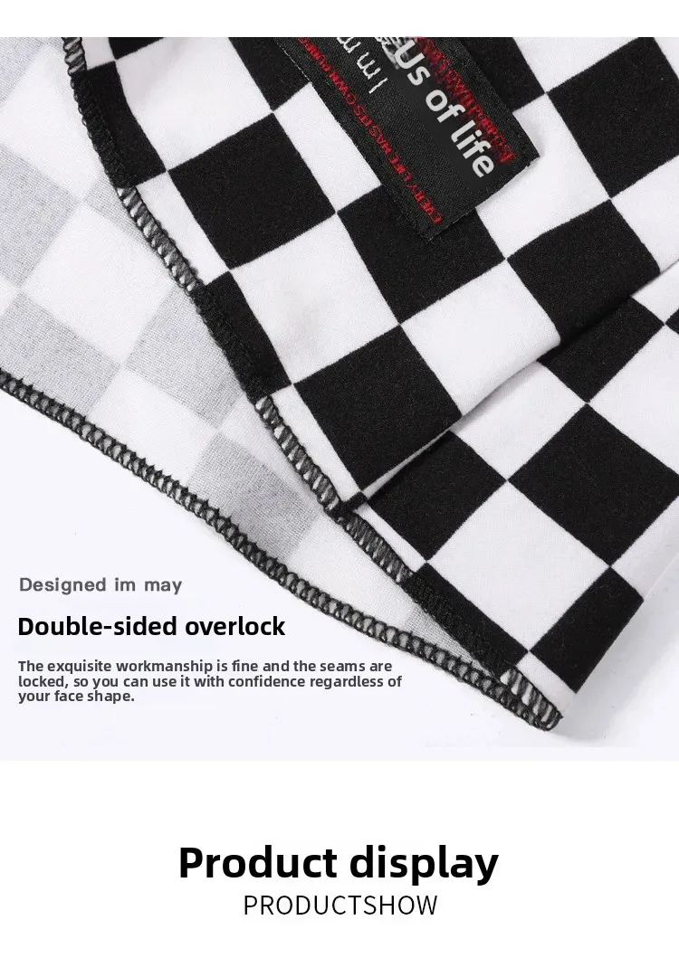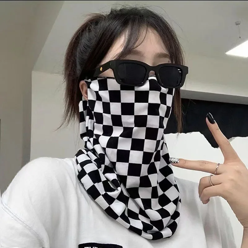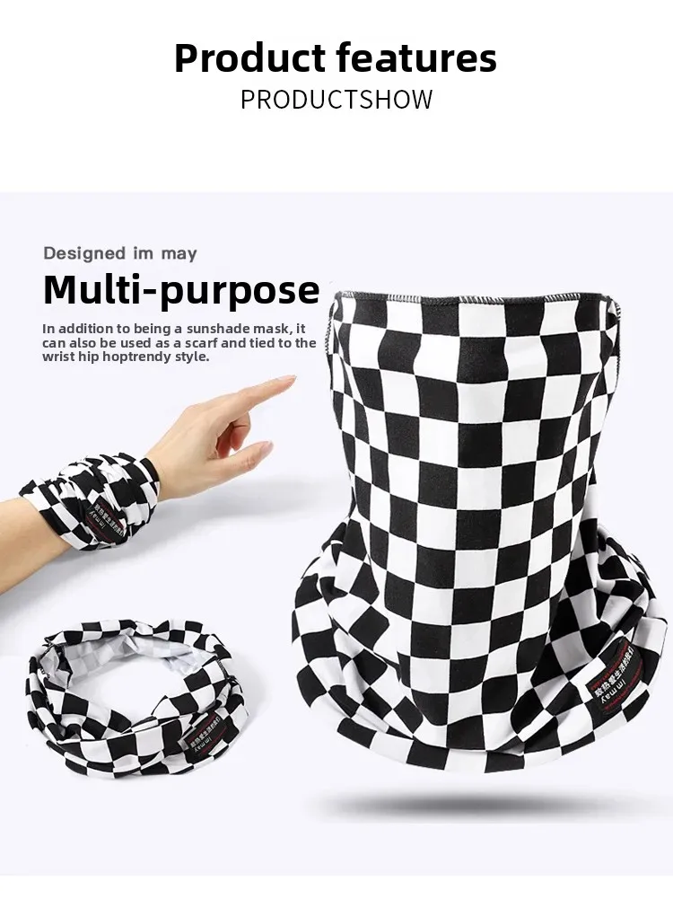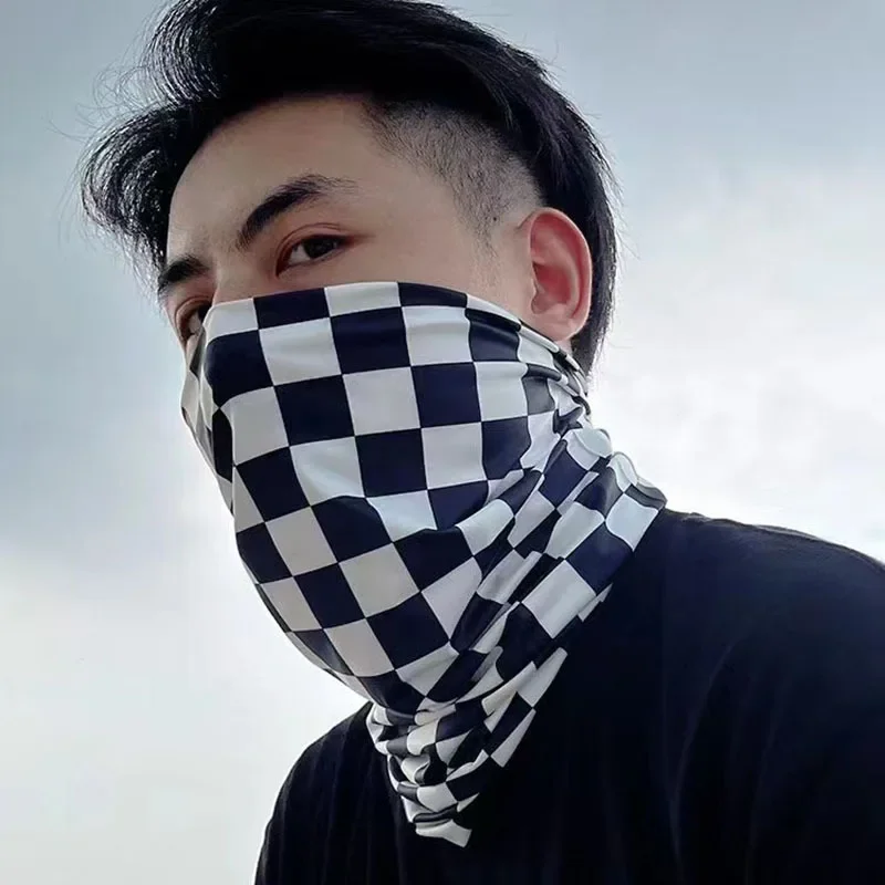 Original Full Face Sun Protection Face Mask Neck Protector Integrated Riding Face Cover Trendy Checkered Motorcycle Towel Unisex