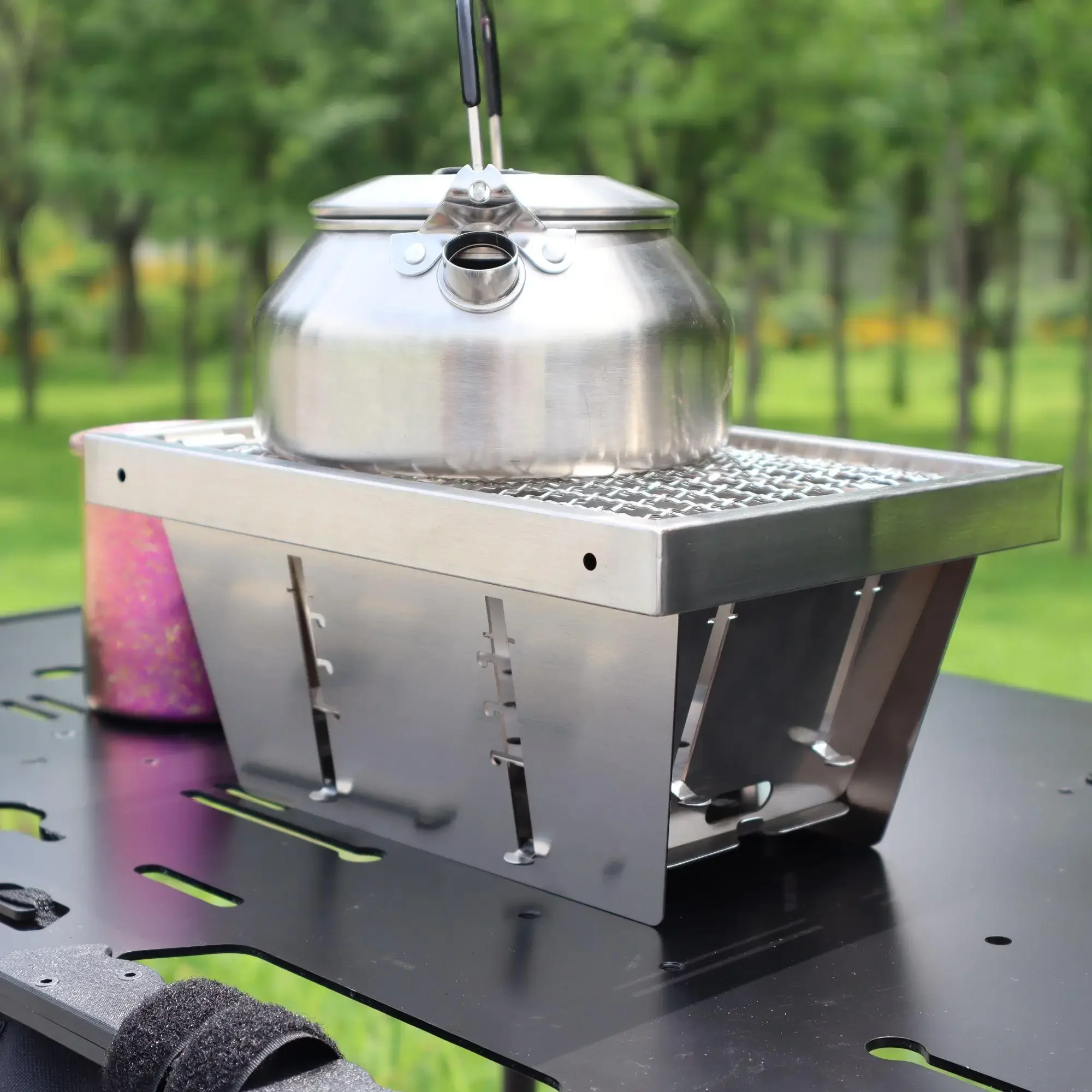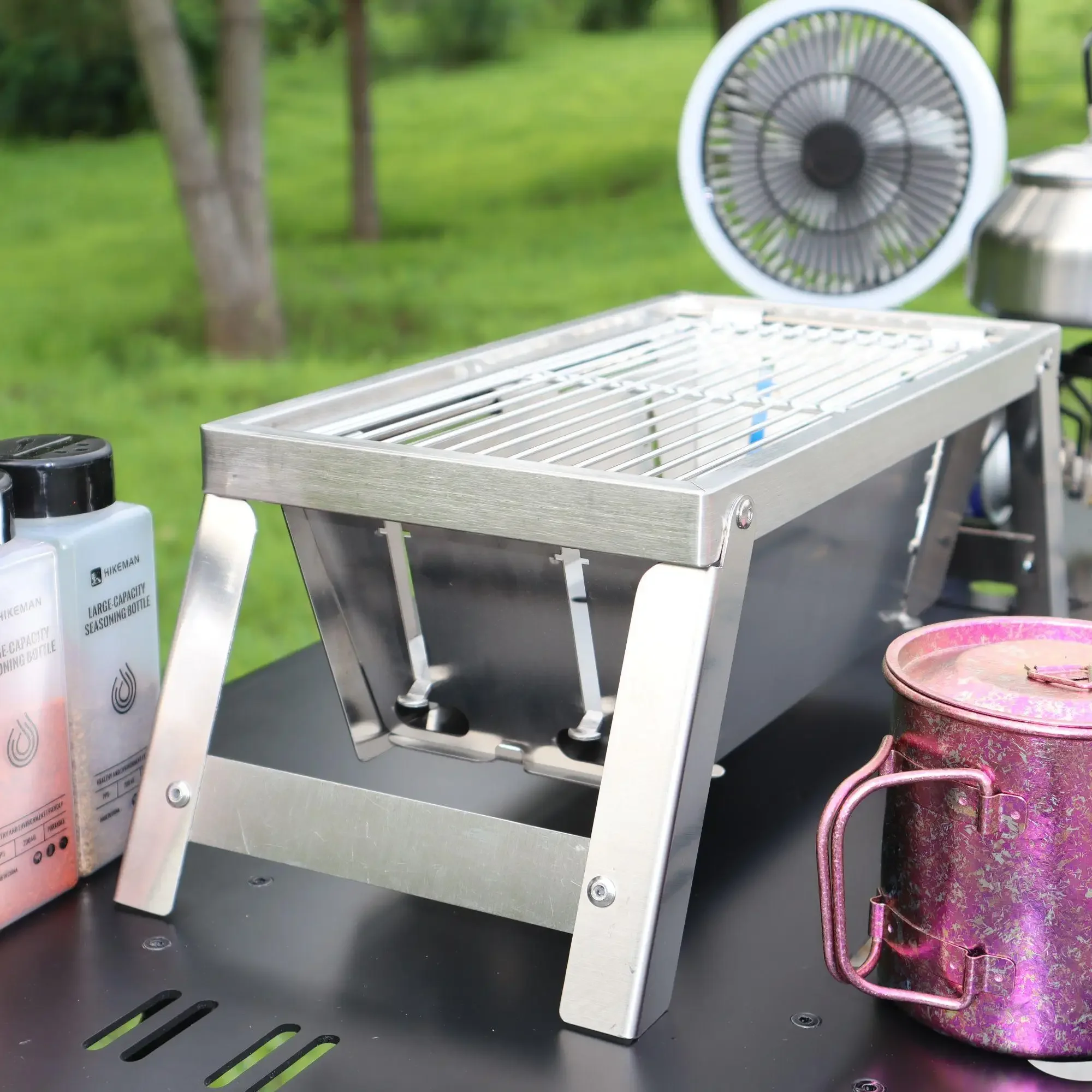 Portable Folding Barbecue Grill Heating Stoves Multifunction Camping BBQ Grill Rack Net Firewood Stove Stainless steel BBQ Grill