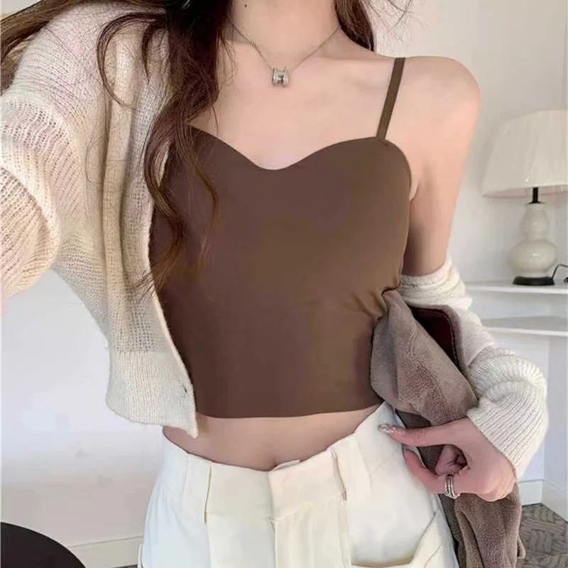 Seamless Camisole for Women Fitness Crop Tops Summer Thin Elegant Sexy All-match Casual One-piece Ice Silk Underwear TubeTop