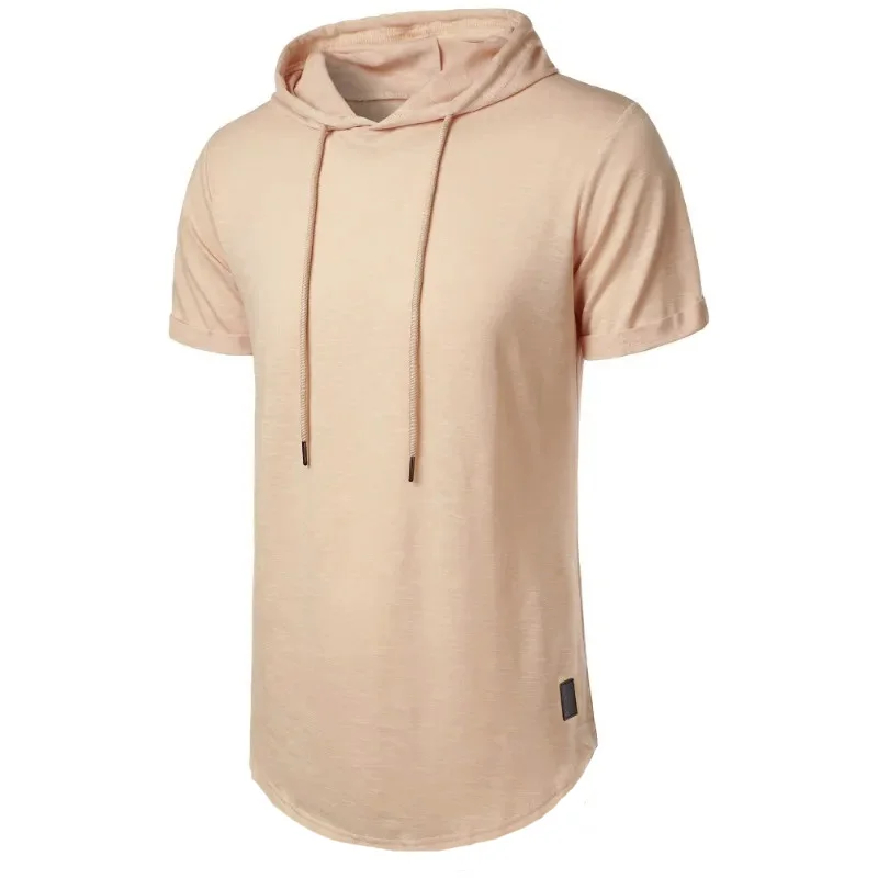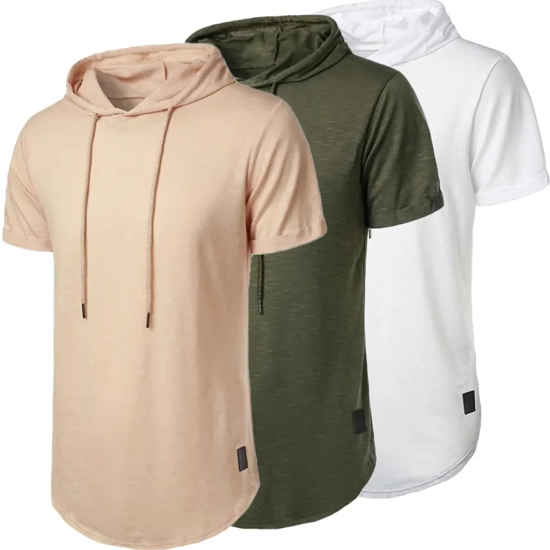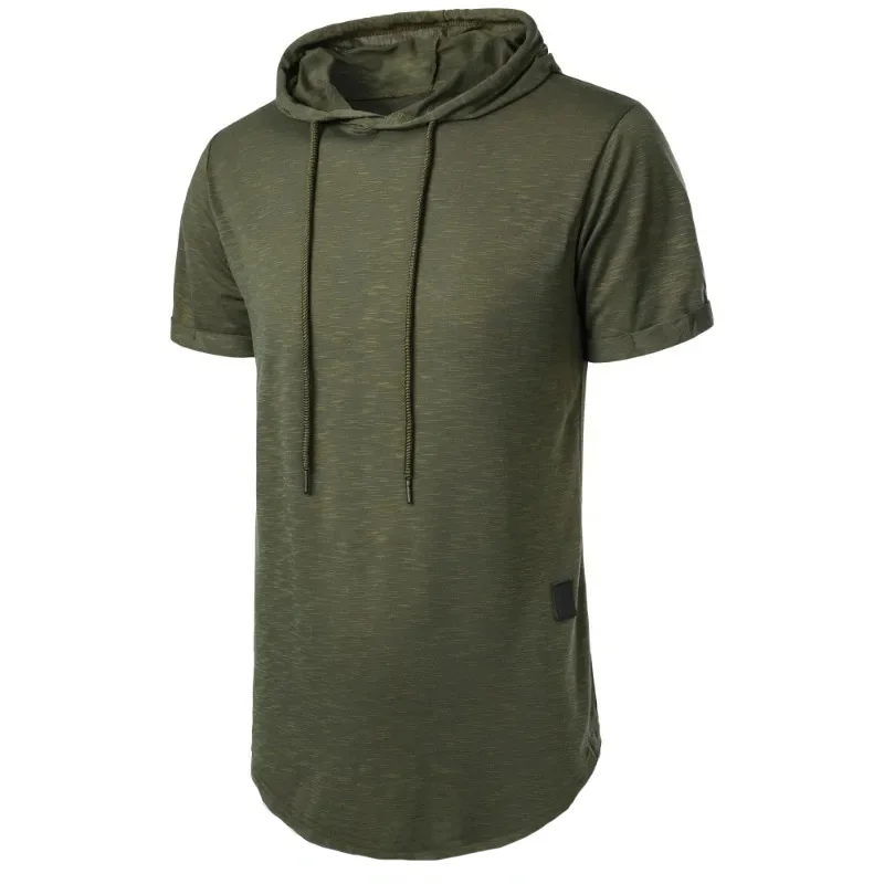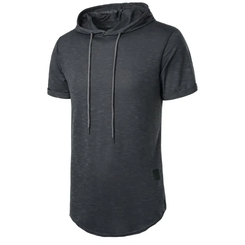 Short Sleeve Hoodie T-shirt for Men Lightweight Breathable Fashion Sports Fitness Running Tops Simple Style Male T-shirts