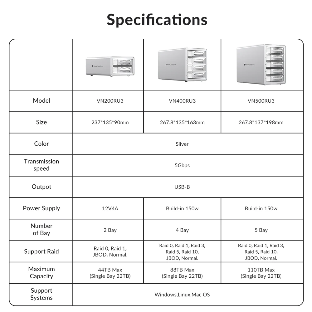 | Supporting Hard Drive Capacity | 44TB/88TB (Single 22TB) |
