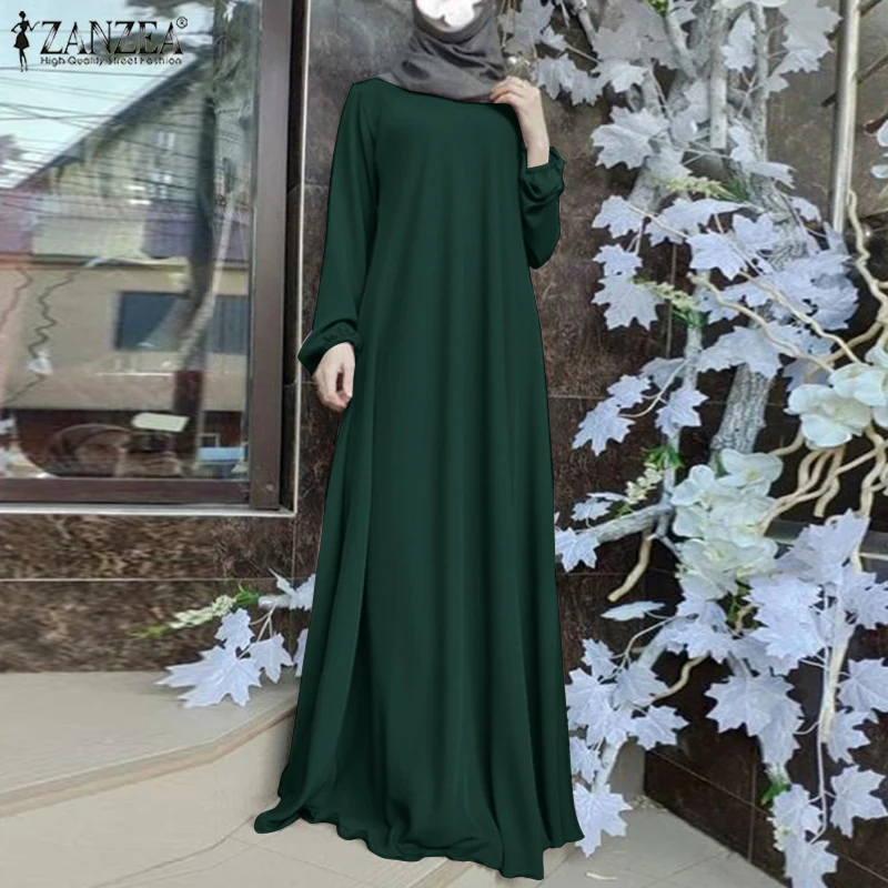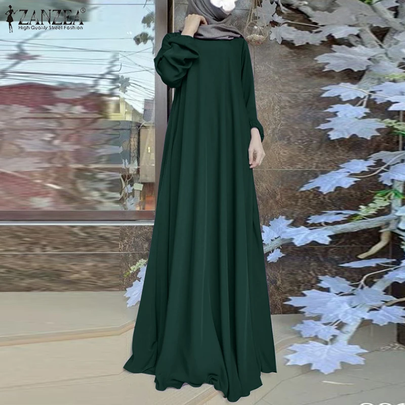 ZANZEA Autumn Women Long Dress Long Sleeve Muslim Maxi Sundress Robe Dubai Vestido Kaftan Tukey Abaya Islamic Clothing Oversize