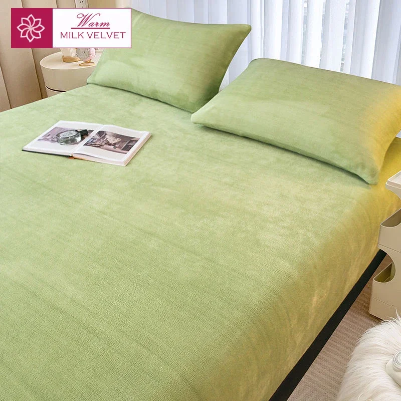 WASART Warm winter velvet fleece fitted sheet elastic mattress cover couple 2 seater bed linens luxury double bed sheet 150×190