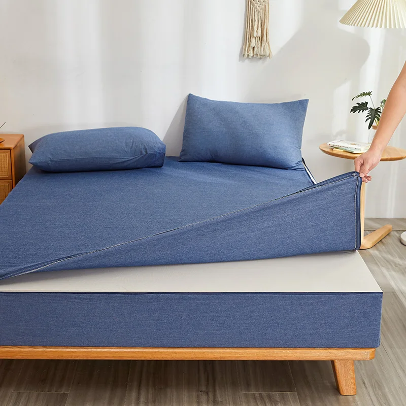 100% Cotton Mattress Cover with Zipper 6-Sides Fully Enclosed Mattress Protector Washed Cotton Fitted Sheet Double Queen Bed