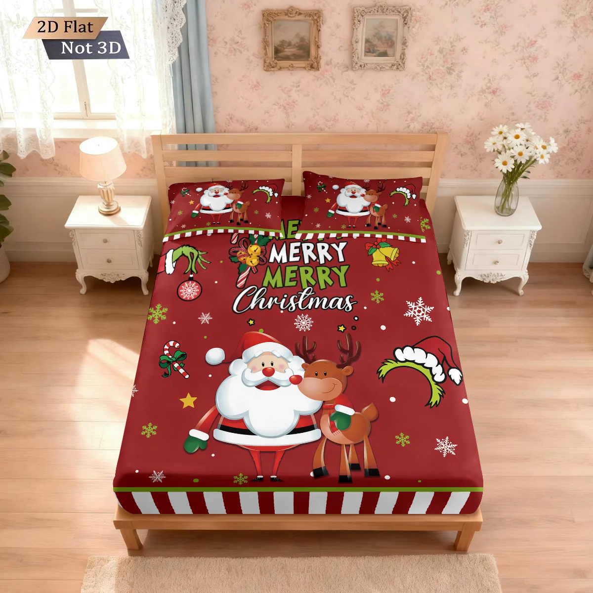3pcs Merry Christmas Santa Claus Print Bed Sheet Set Multi Size Soft Bedcover Bedroom Bedding Holiday Decoration