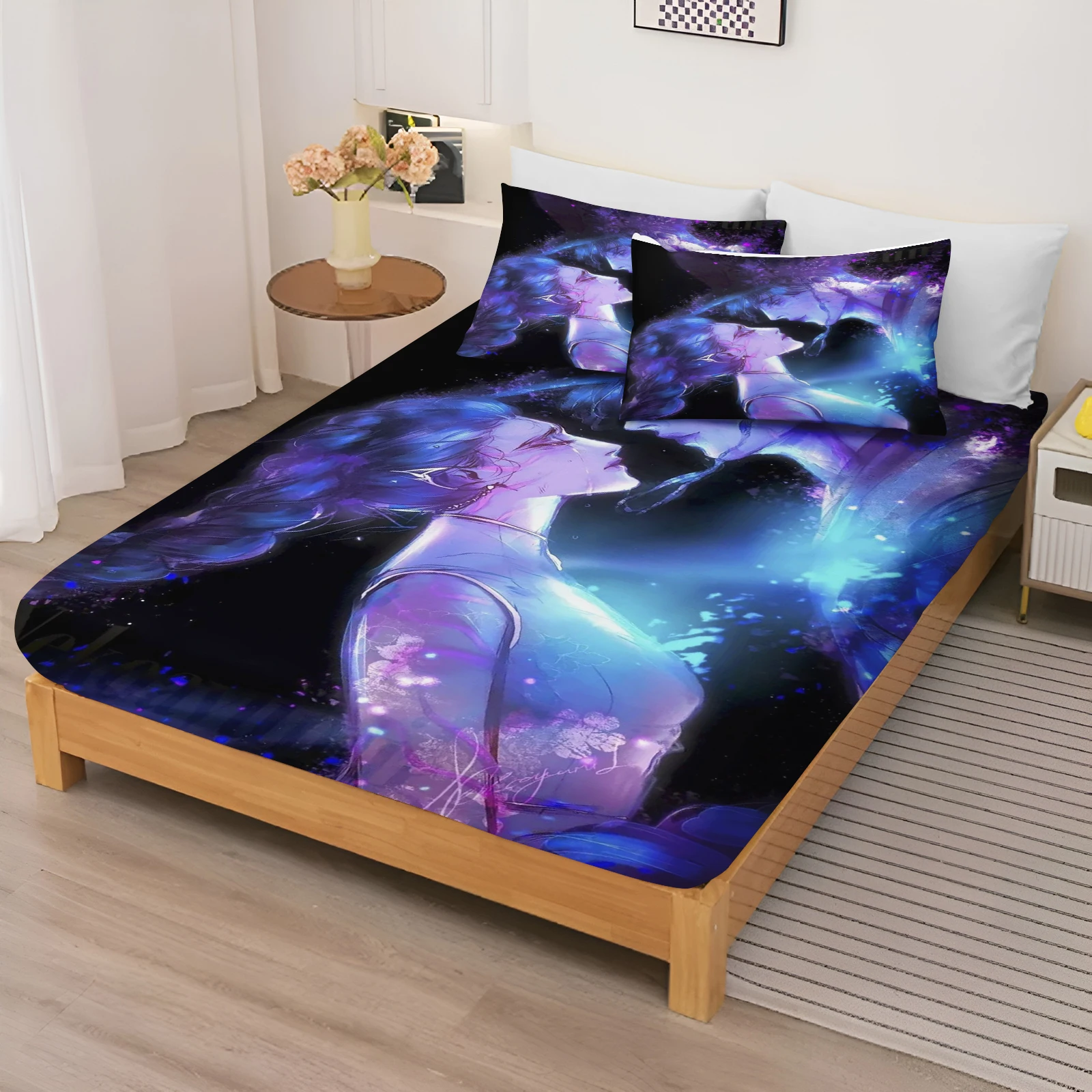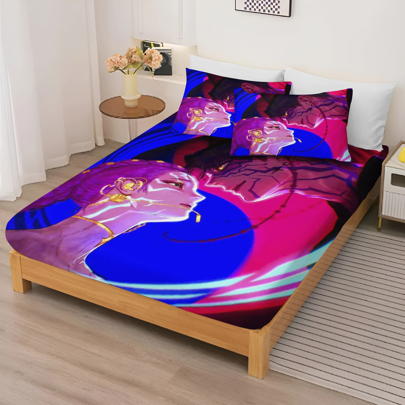 Fitted Sheet Kpop:Demon Hunter Girl Group Bed Sheets And Pillowcases Set Coverage Cartoon Cover Elastic Digital Printing Beddin