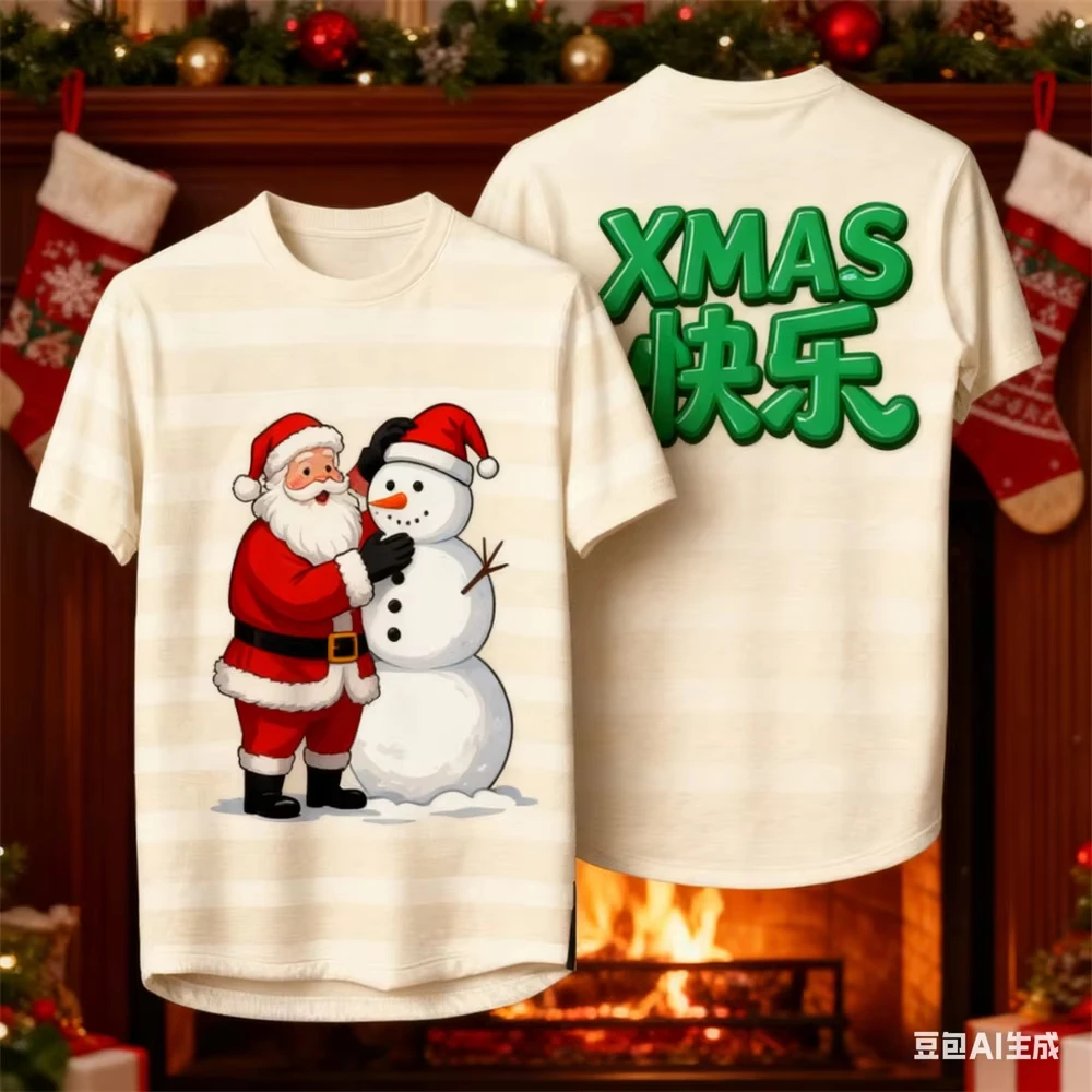 Christmas 3D Print T-shirt Men Women Fashion Short Sleeve Tshirt Kids Hip Hop Tops Tees Christmas Tree Tshirt New Year 2025