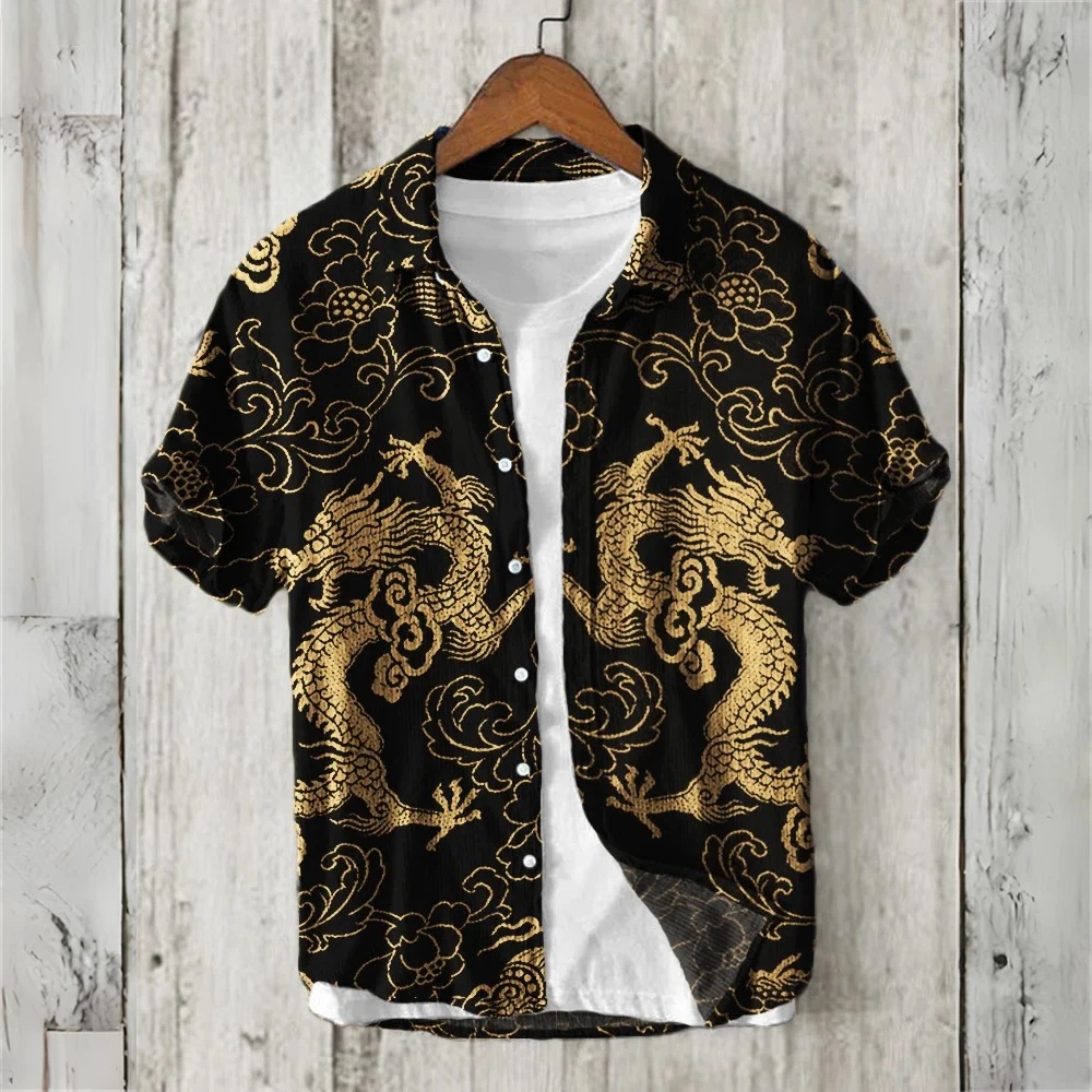 10 colors summer new men’s short-sleeved shirts printed clothing business casual daily comfortable lapel loose men’s tops