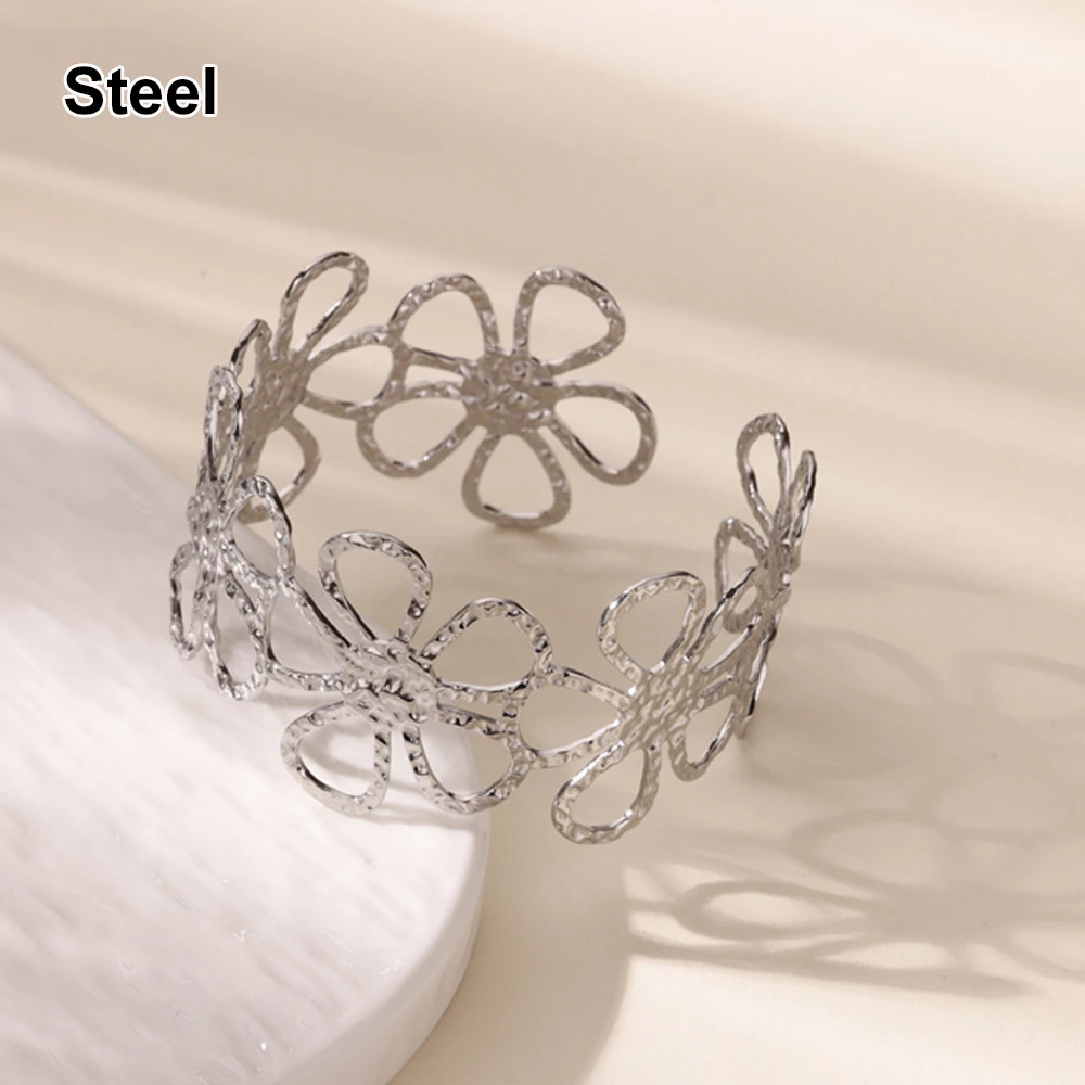 Die-casting Layered Heart Bangles for Women Gold Color Hollow Flower Cuff Bangle Bracelet femme Fashion Wedding Wedding Gift